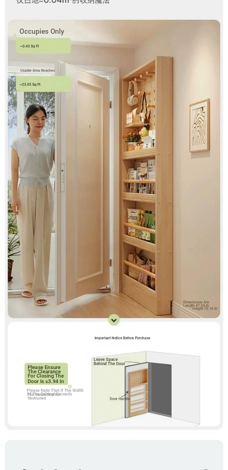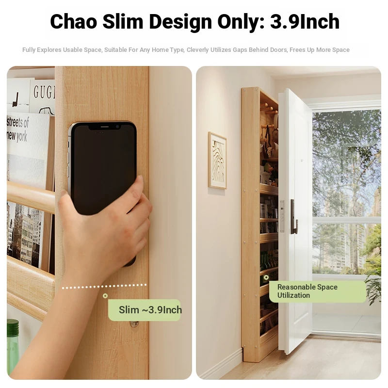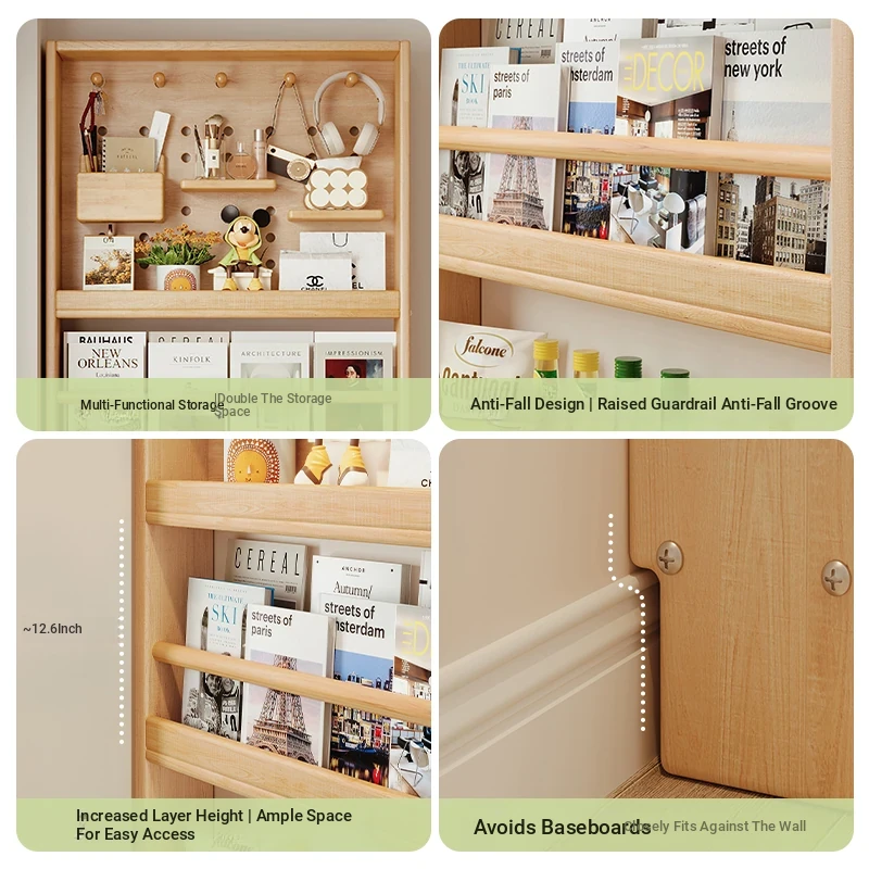 Slim Solid Wood Wall-Mounted Bookshelf - Space-Saving Design Perfect for Small Areas, Ideal for Behind Doors or Tight Spaces, Stylish and Functional Storage Solution
