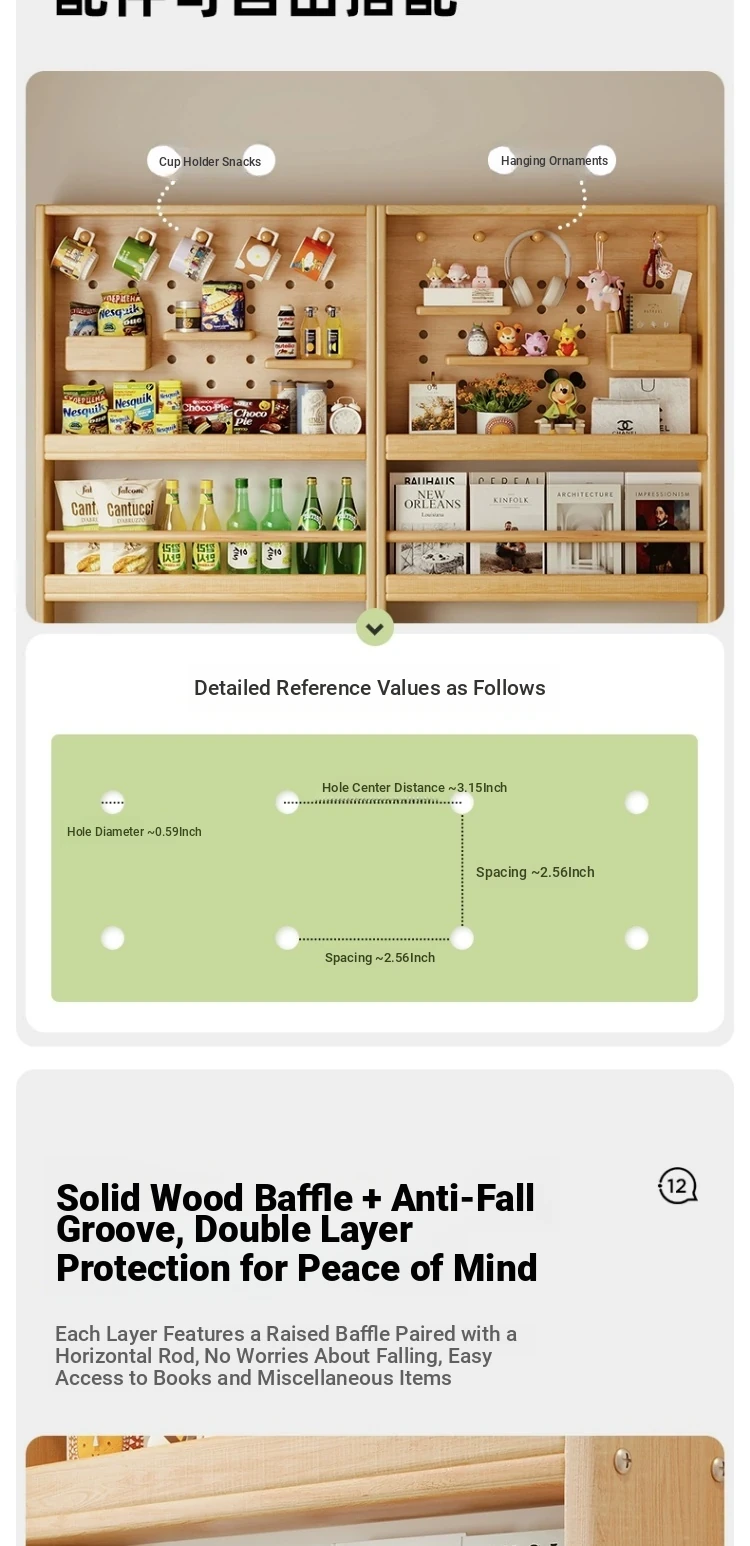 【708.66inm Thickened Solid Wood Eco-Panel - Pegboard Style】60*10*178♥Warm White