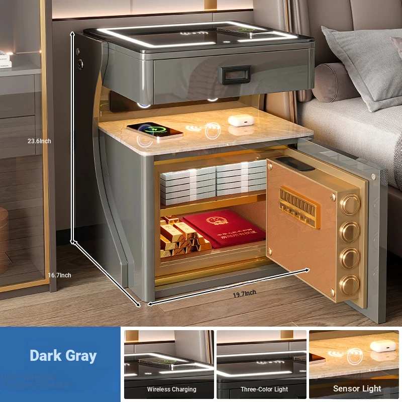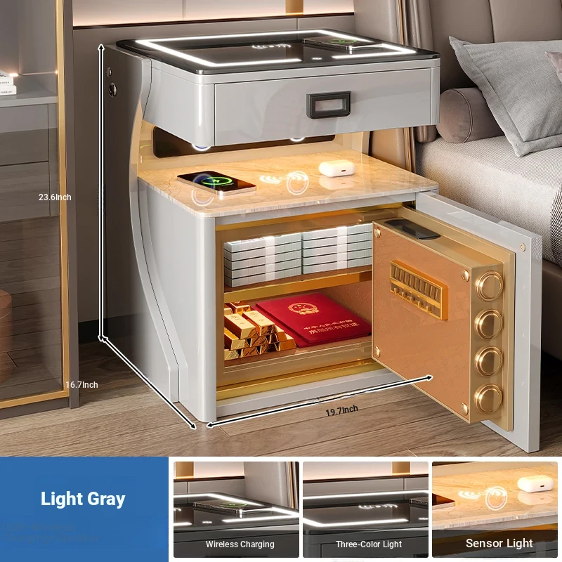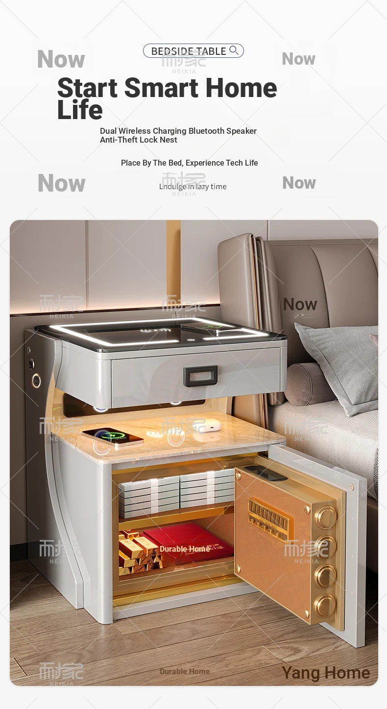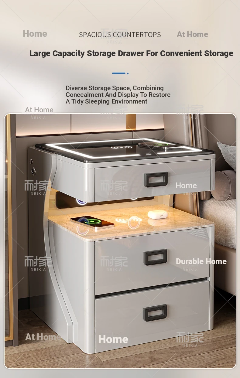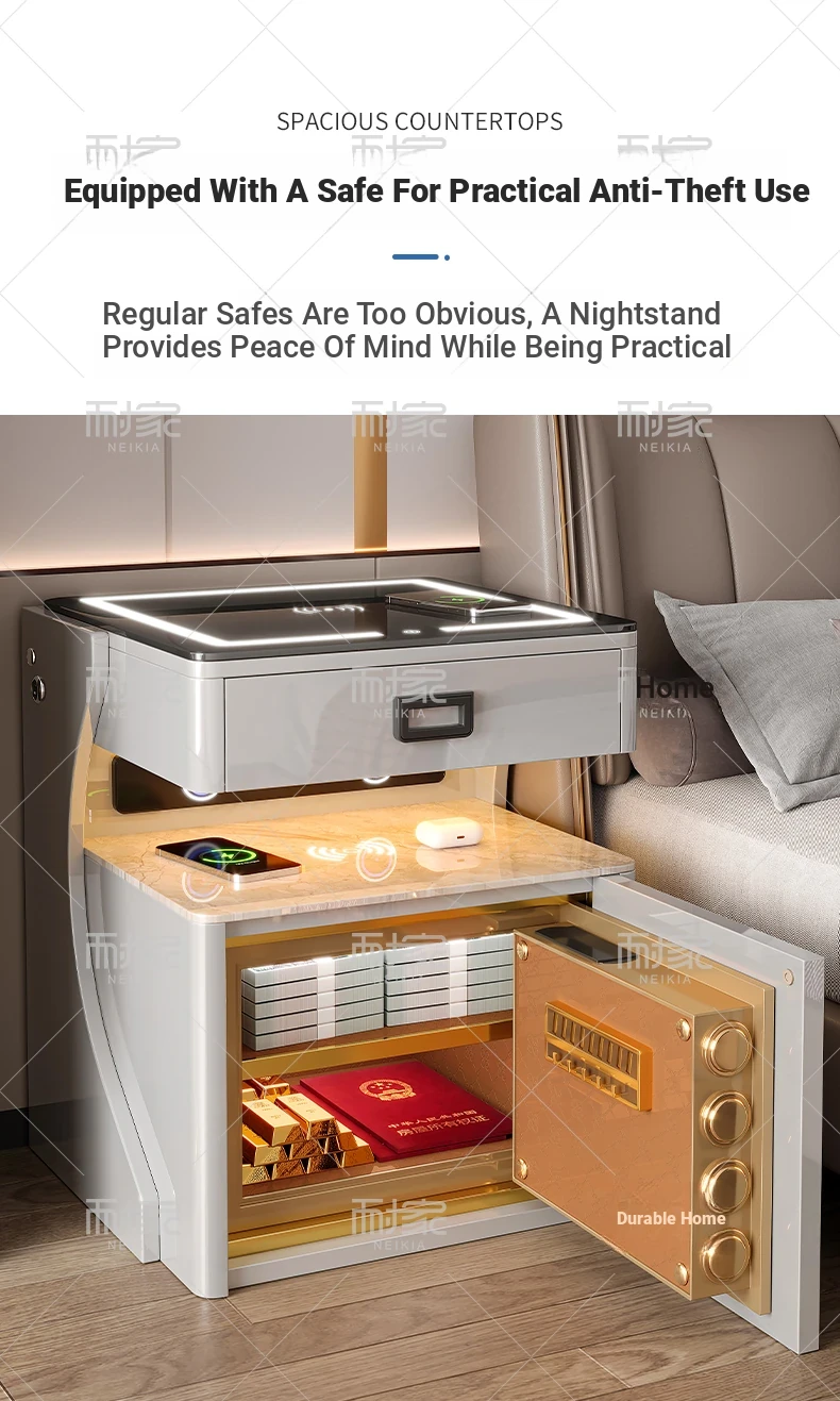 Smart Nightstand 2025 New Model: Luxury Solid Wood Multi-Functional Bedside Cabinet with Built-in Safe, Rechargeable and Stylish Design for Modern Living