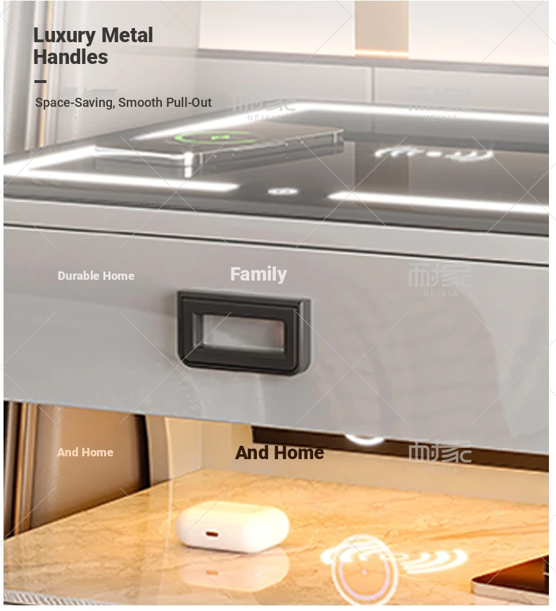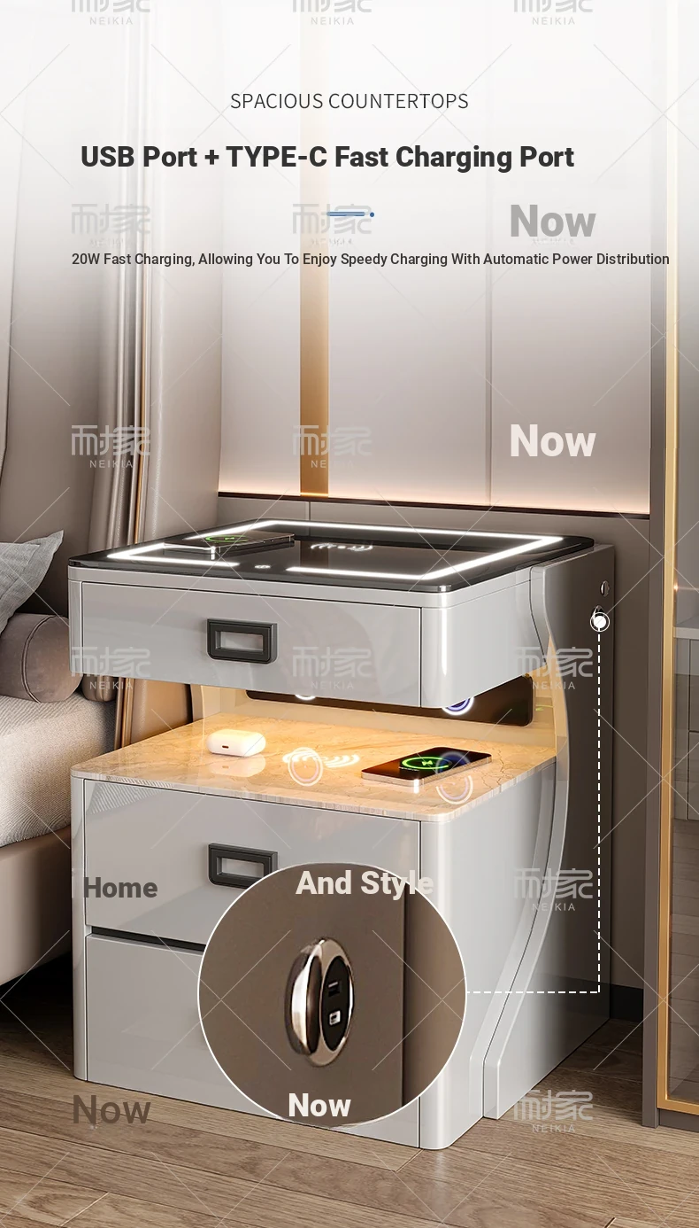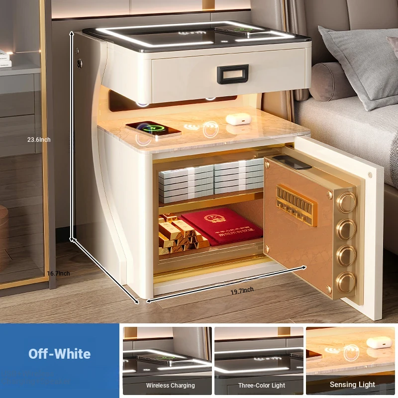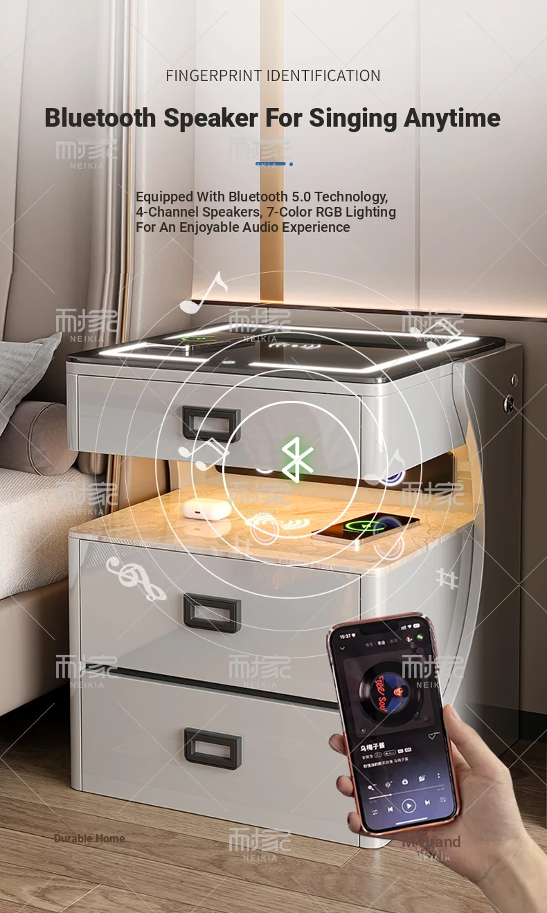 Smart Nightstand 2025 New Model: Luxury Solid Wood Multi-Functional Bedside Cabinet with Built-in Safe, Rechargeable and Stylish Design for Modern Living