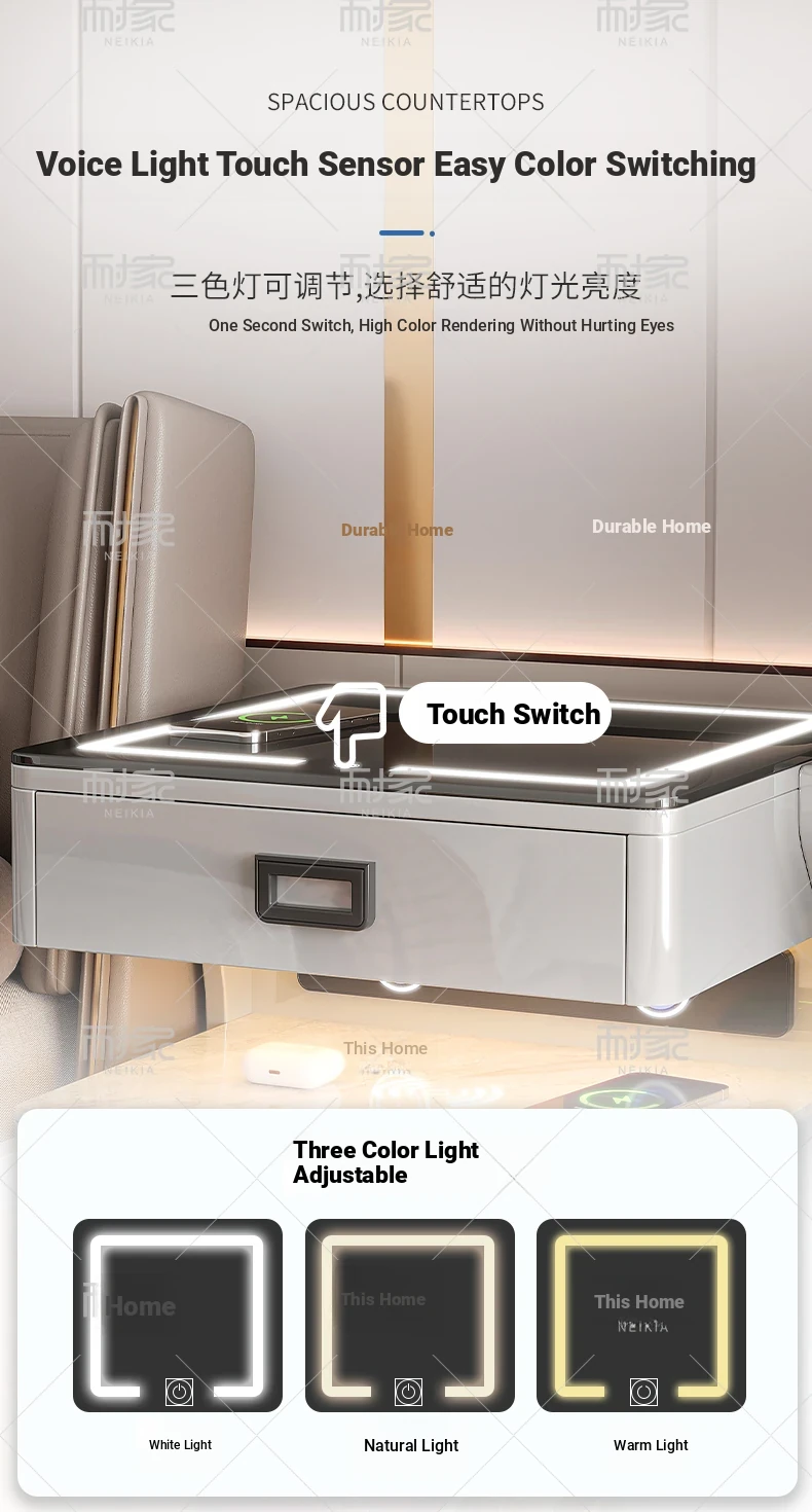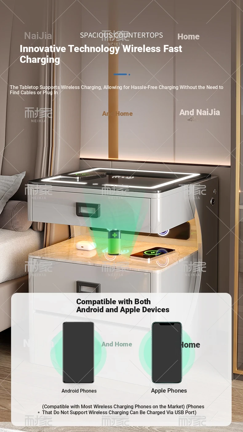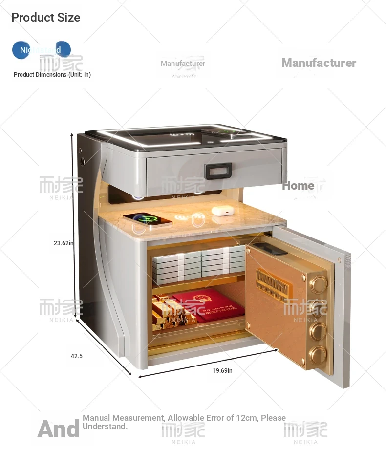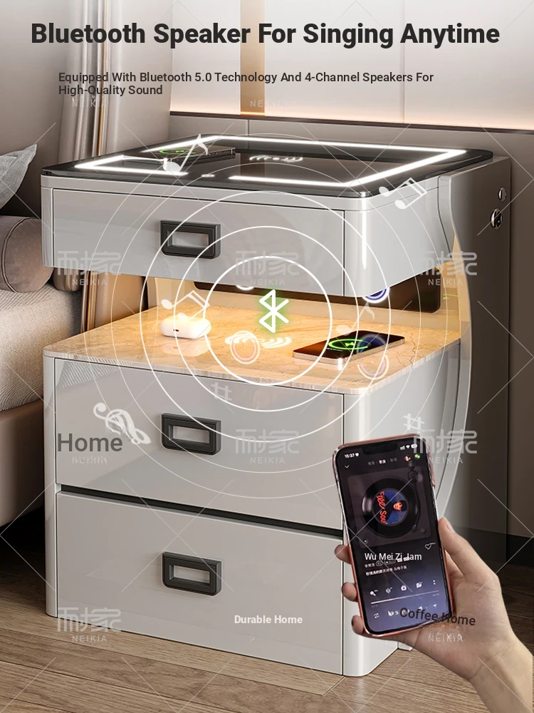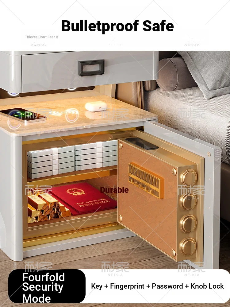 Smart Nightstand 2025 New Model: Luxury Solid Wood Multi-Functional Bedside Cabinet with Built-in Safe, Rechargeable and Stylish Design for Modern Living