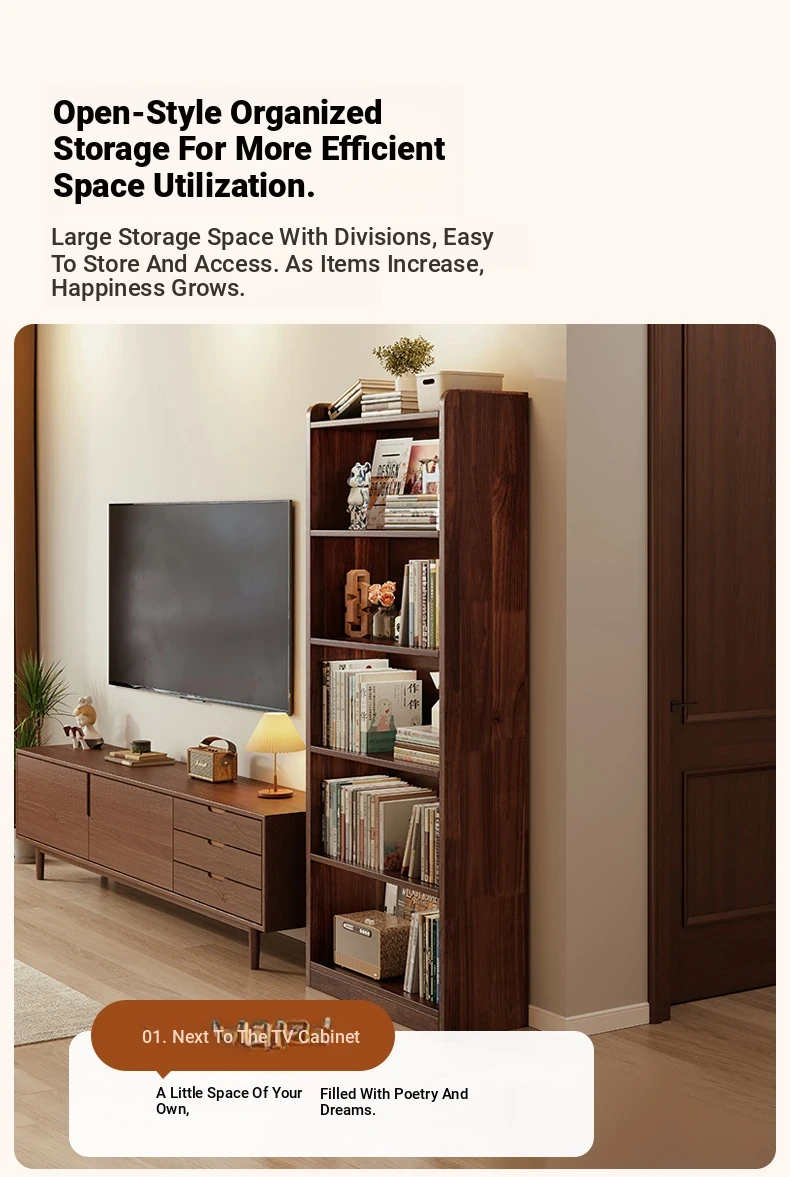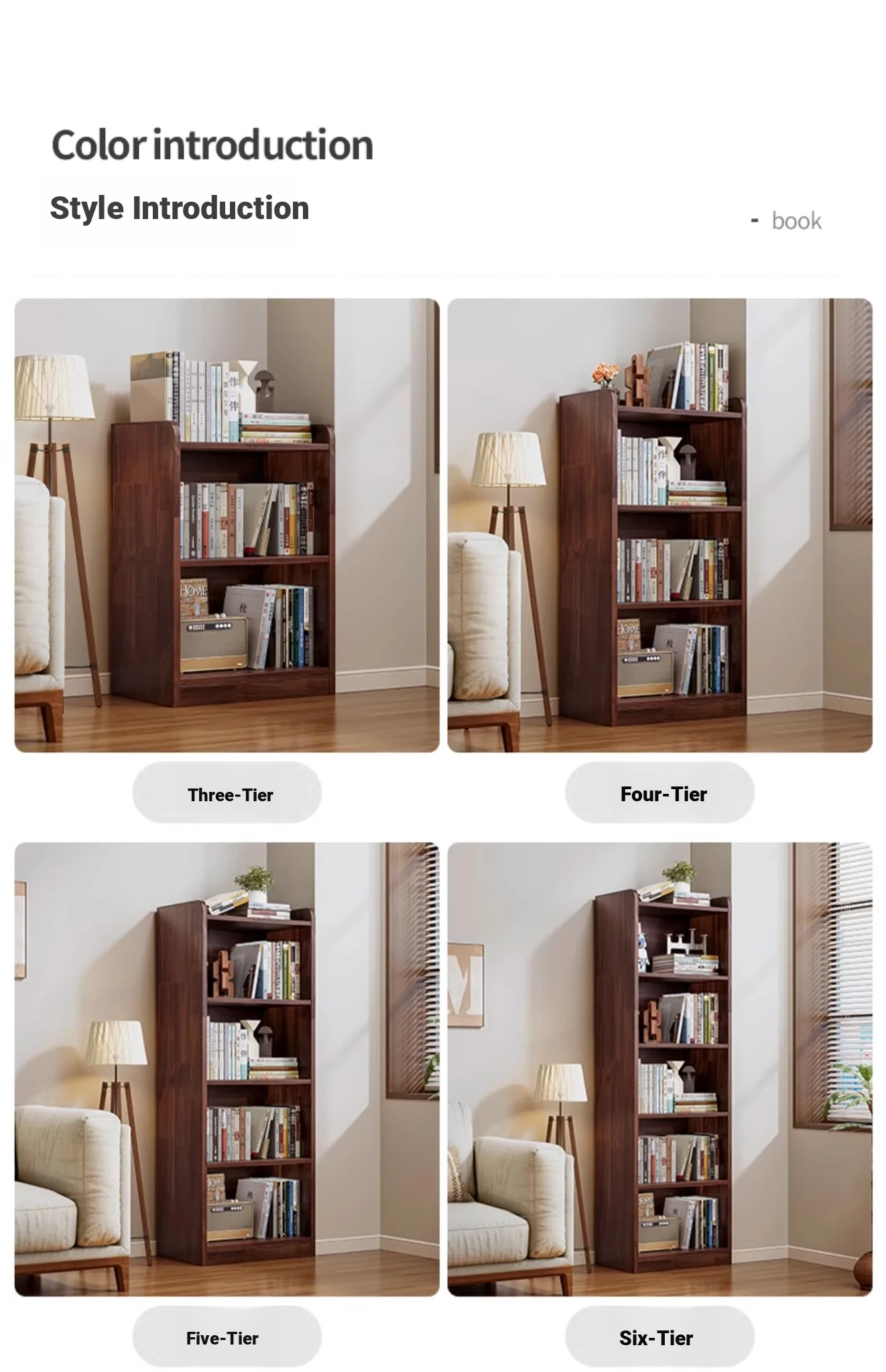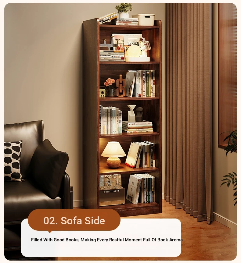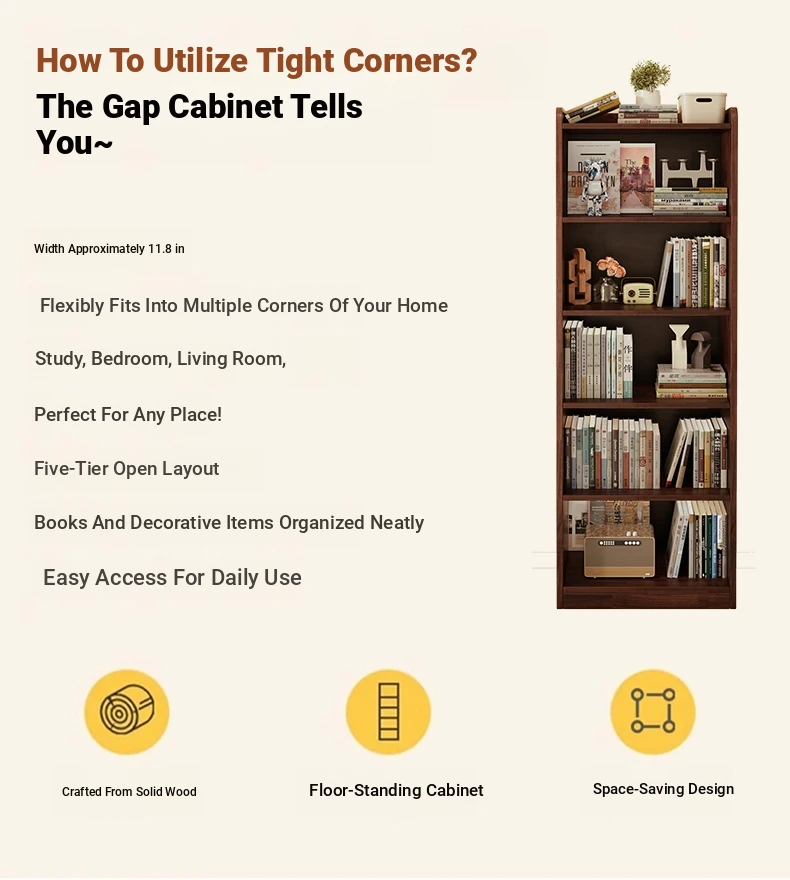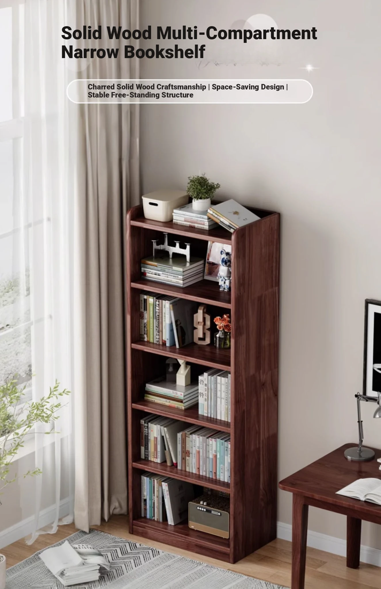 Solid Wood Bookshelf – Floor-standing Storage Rack for Living Room, Wall-mounted Organizer Cabinet, Multi-layer Narrow Bookshelf for Students, Stylish and Functional Storage Solution