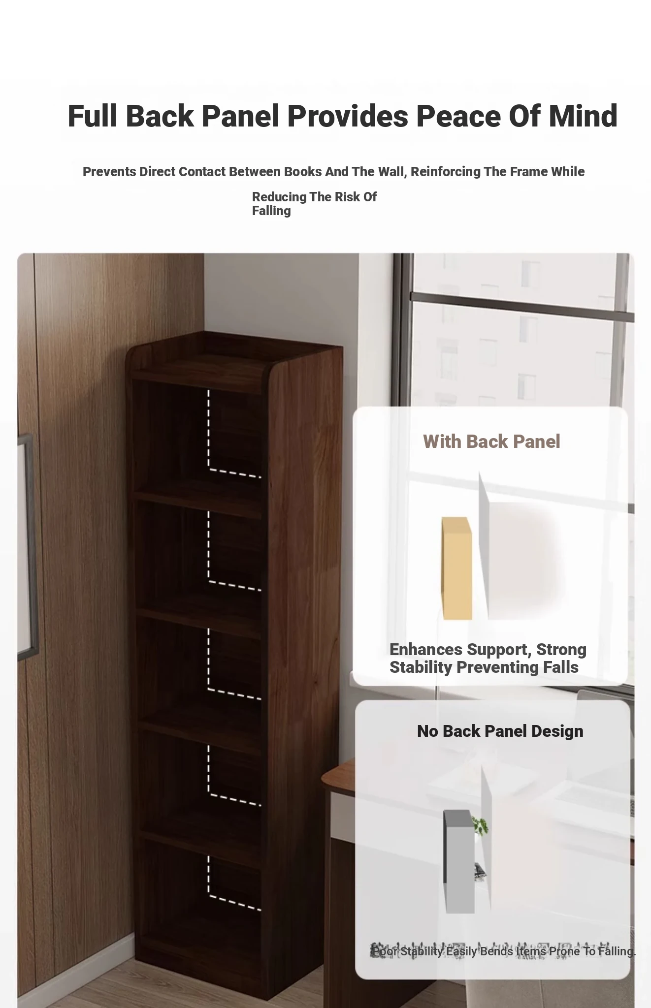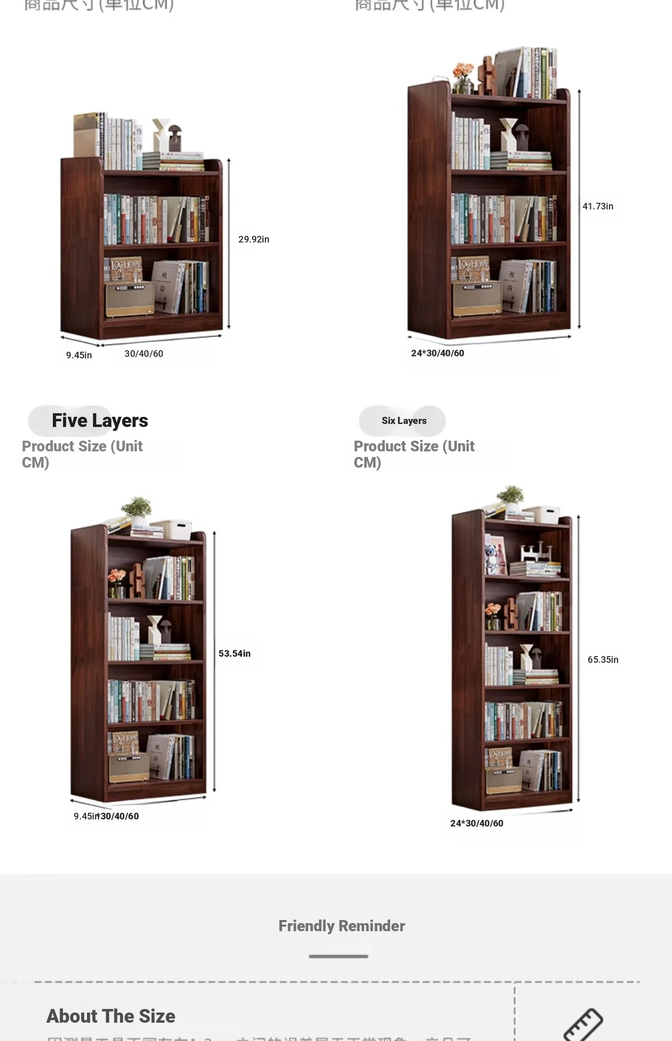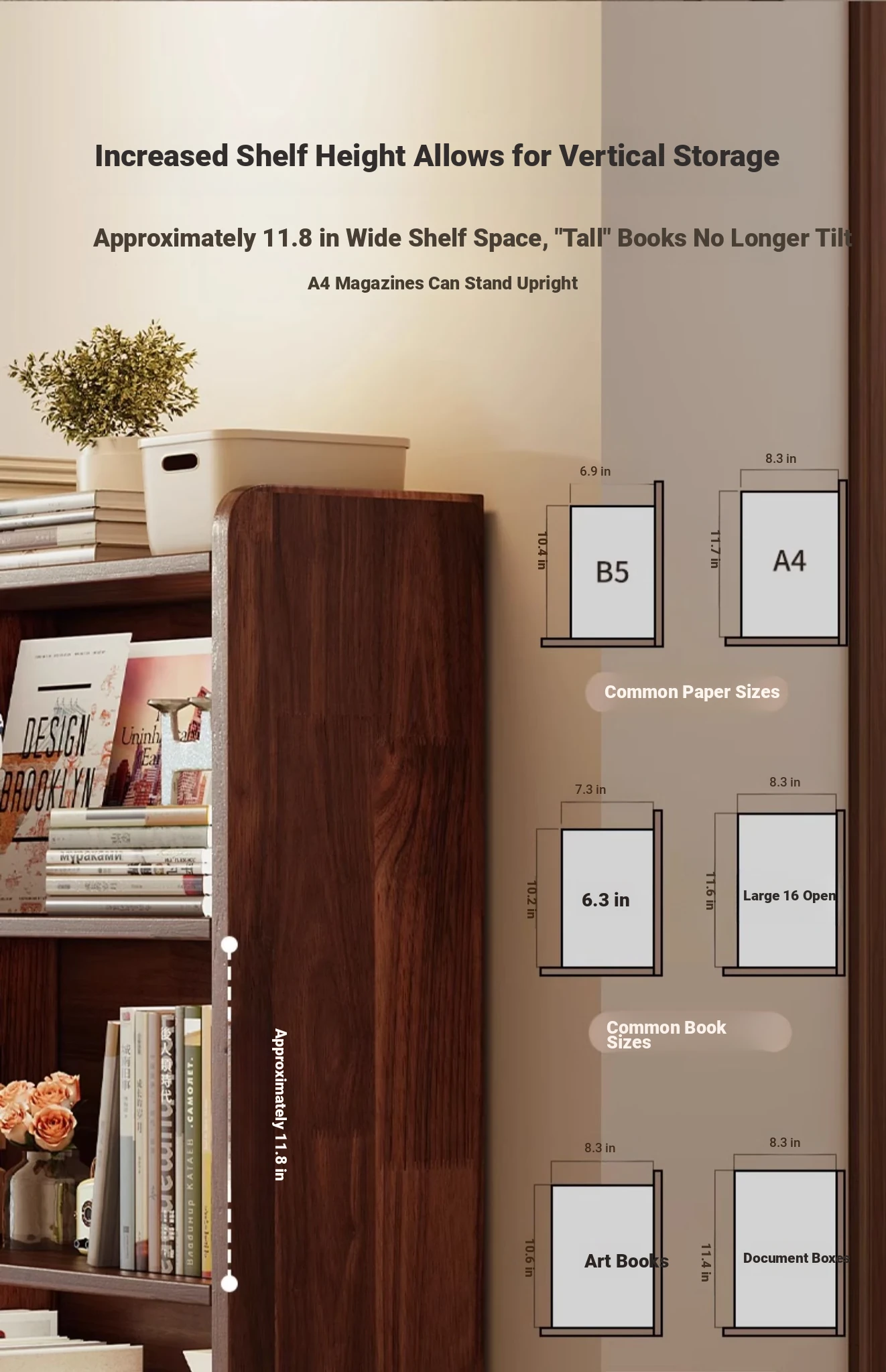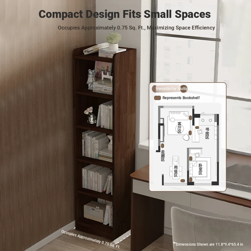 Solid Wood Bookshelf – Floor-standing Storage Rack for Living Room, Wall-mounted Organizer Cabinet, Multi-layer Narrow Bookshelf for Students, Stylish and Functional Storage Solution
