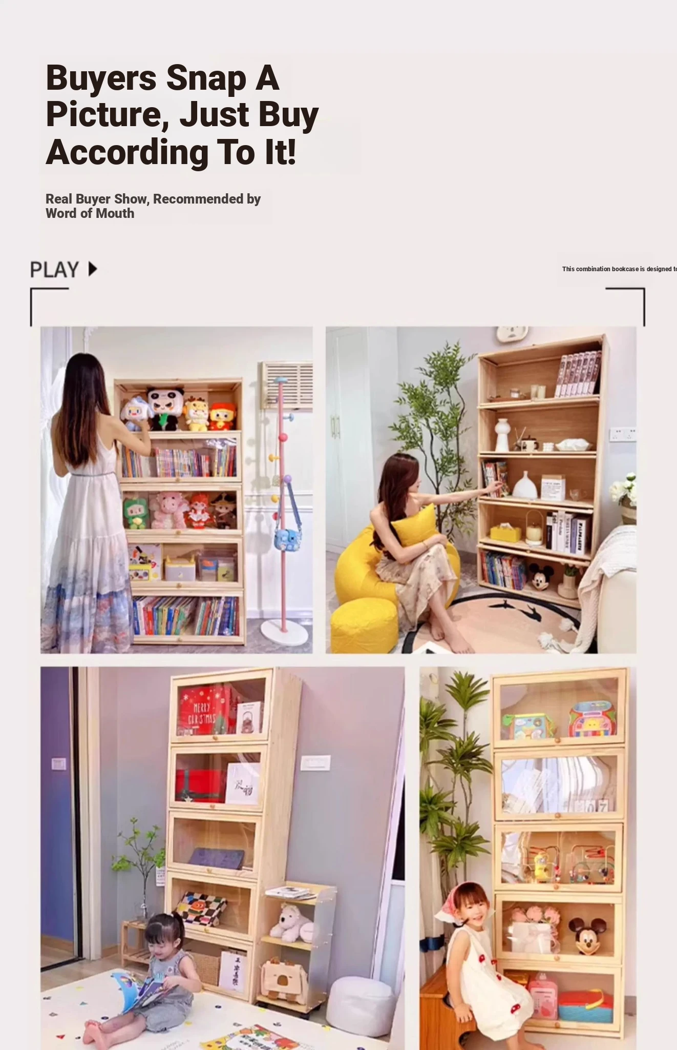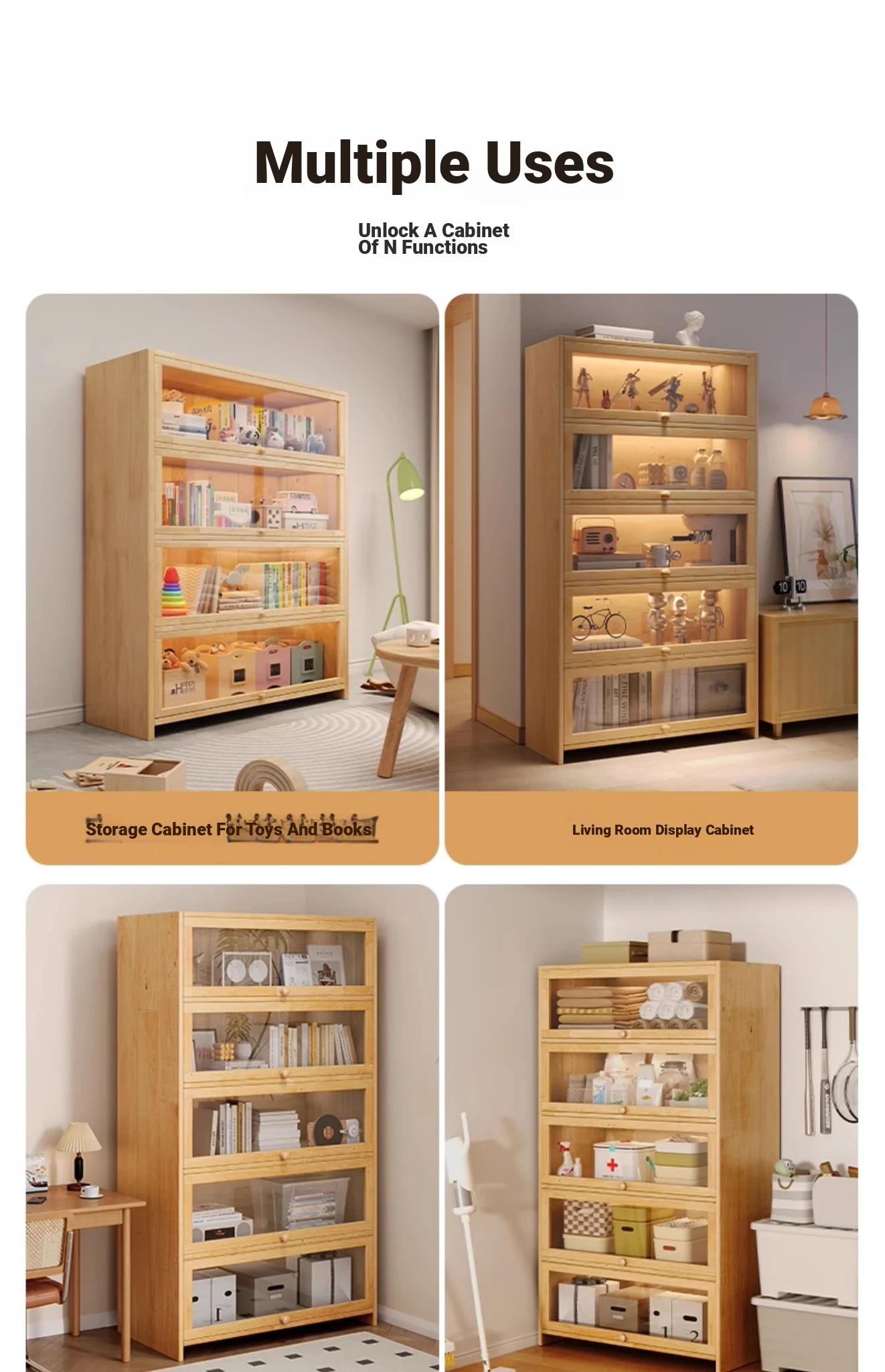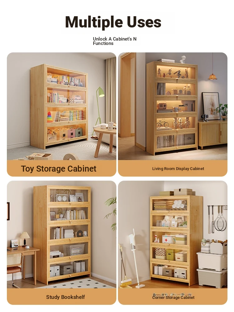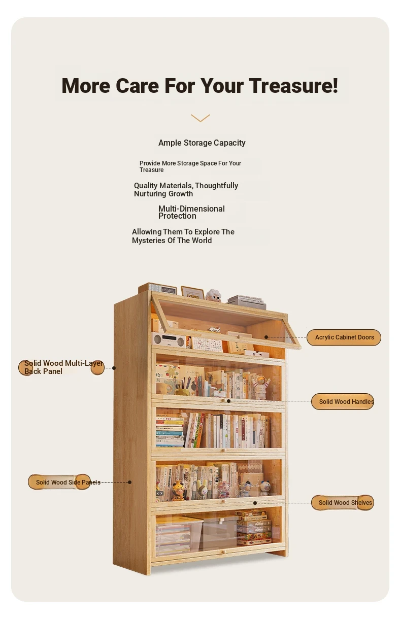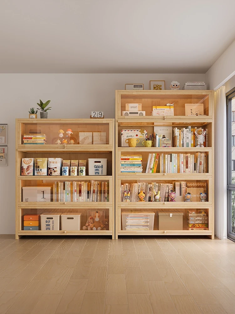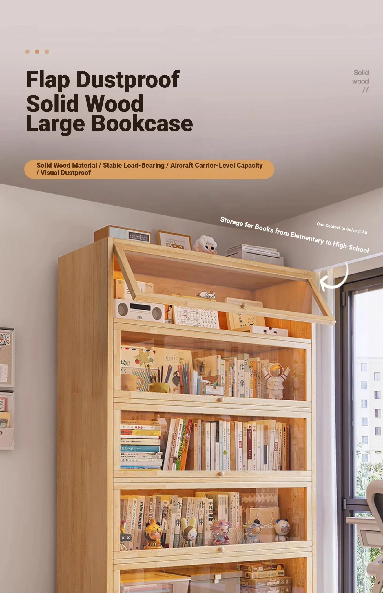 Solid Wood Bookshelf Set – Dust-Proof Wall Unit for Home, Perfect for Living Room Display, Kids' Storage, and Stylish Organization!