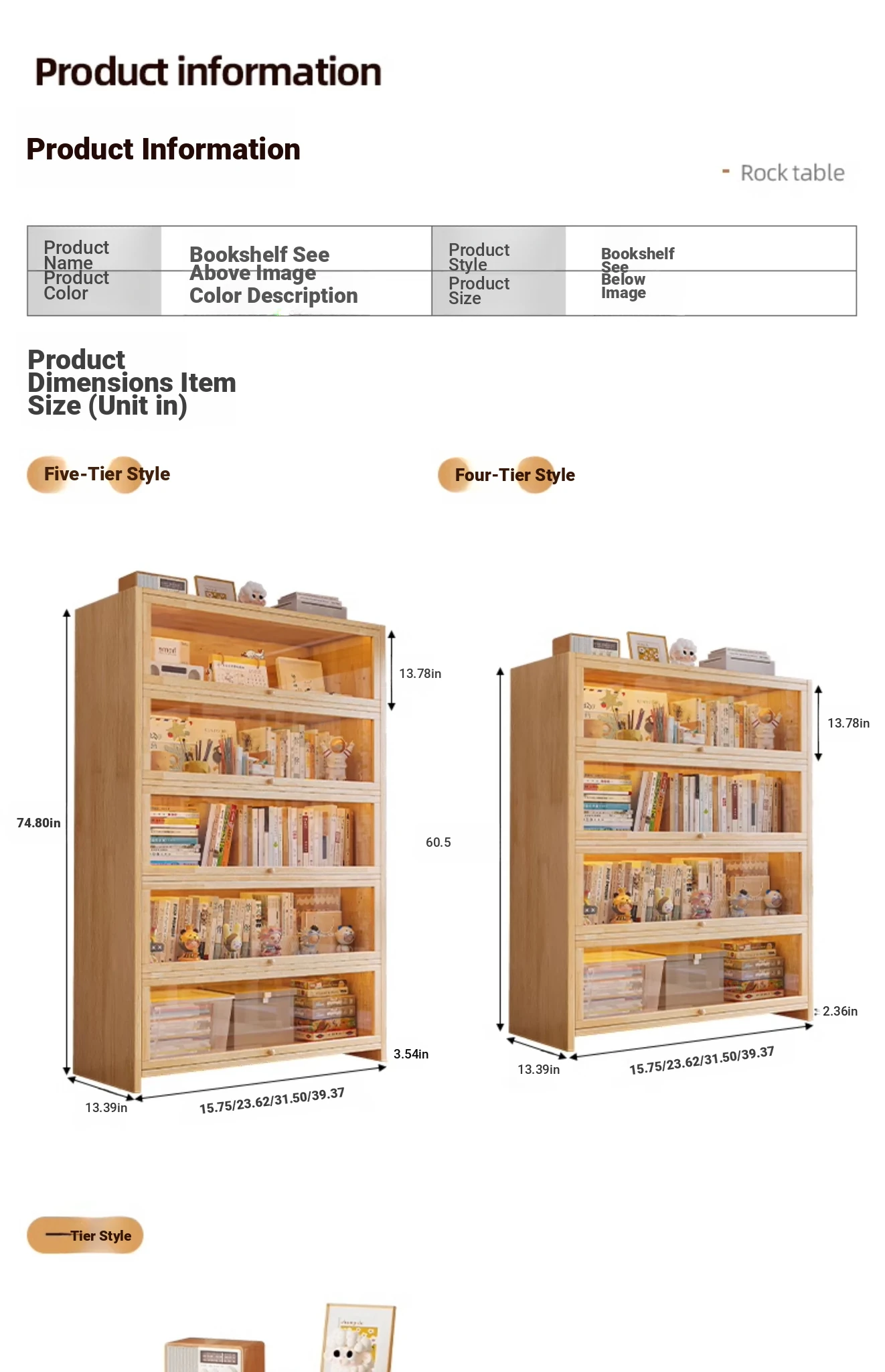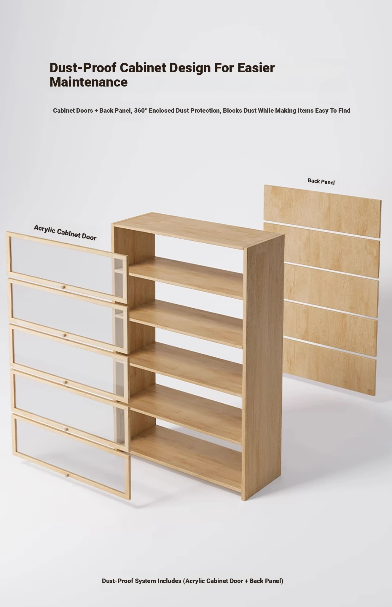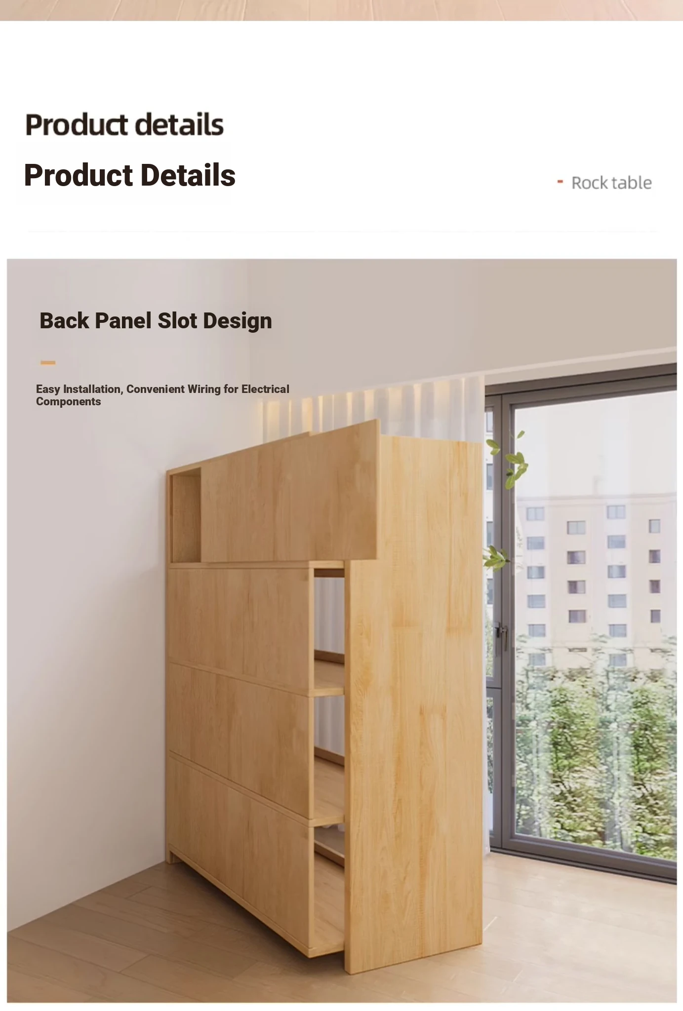 5-Tier - Without Doors [Length 39.37in, Width 9.45in, Height 62.99in] Natural Wood, Unfinished, Thickened 0.59in Solid Wood Material