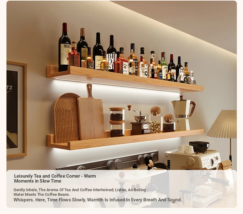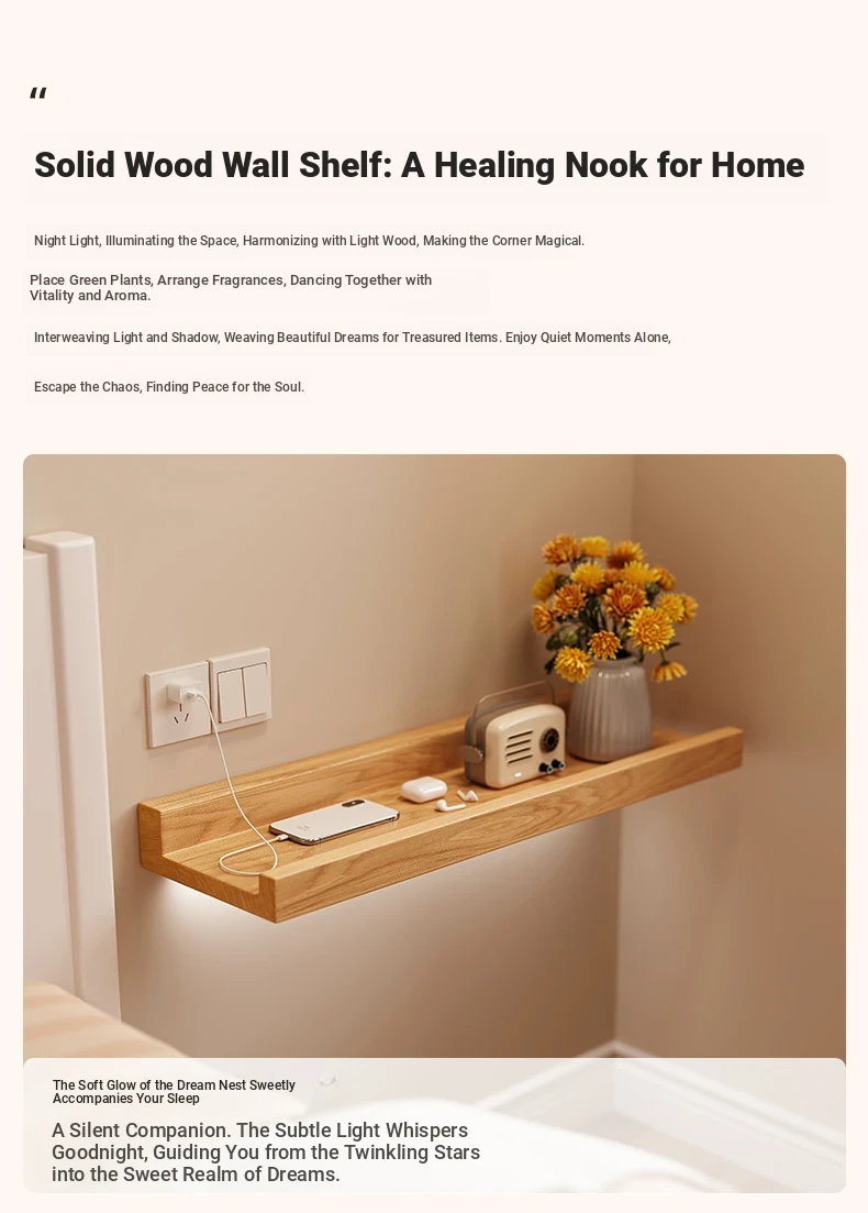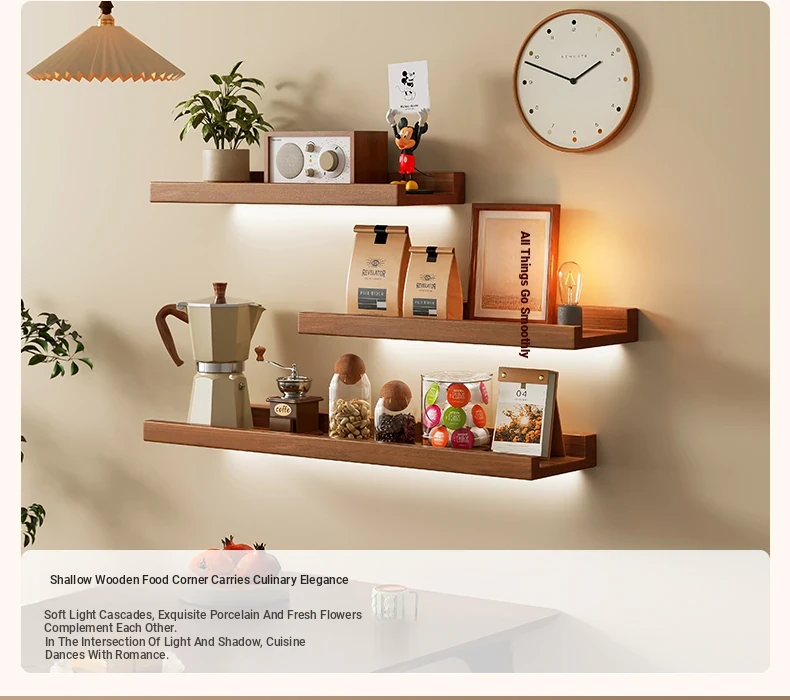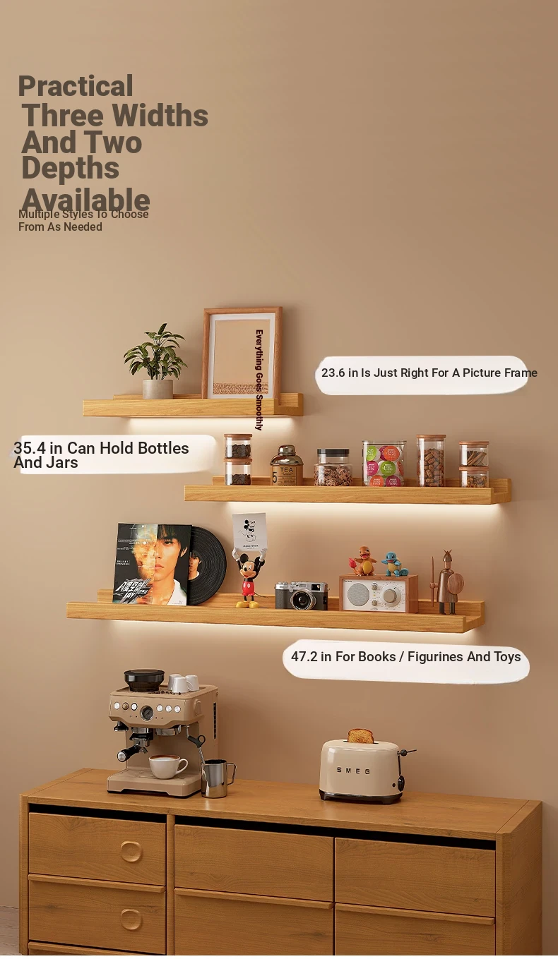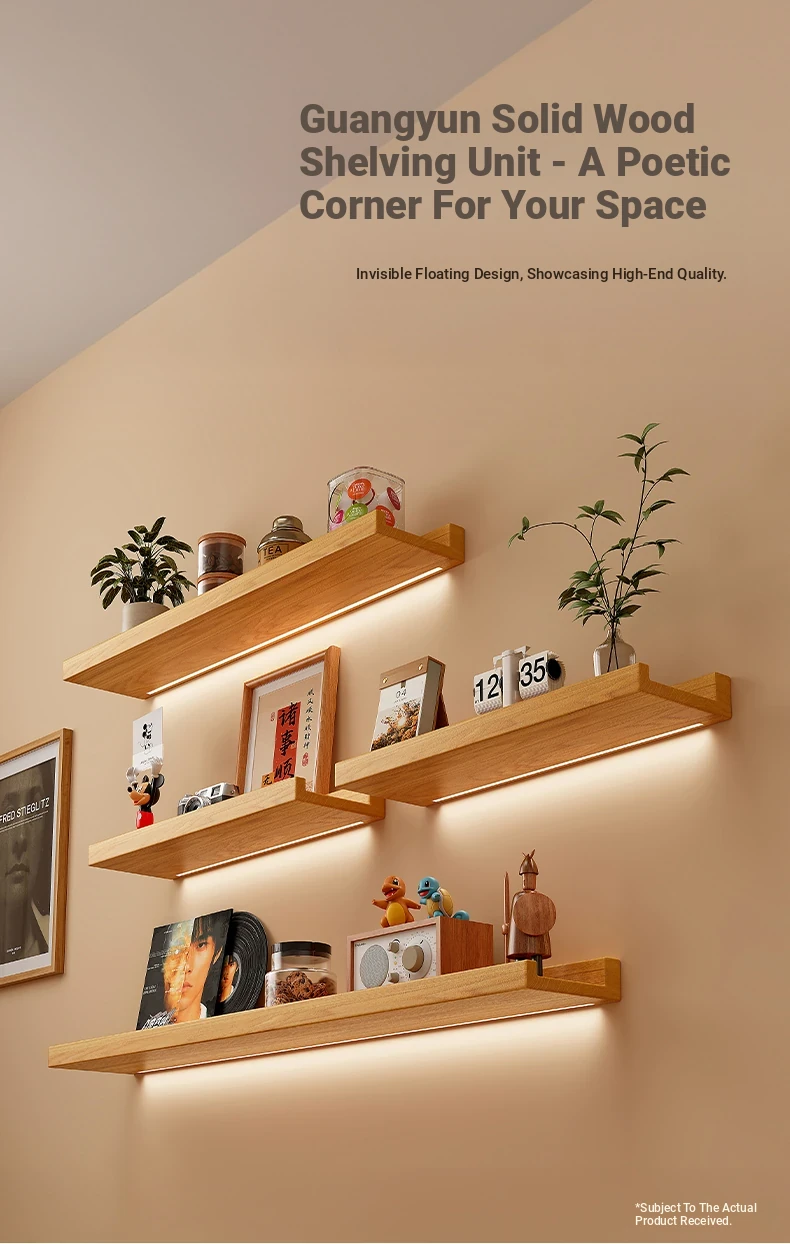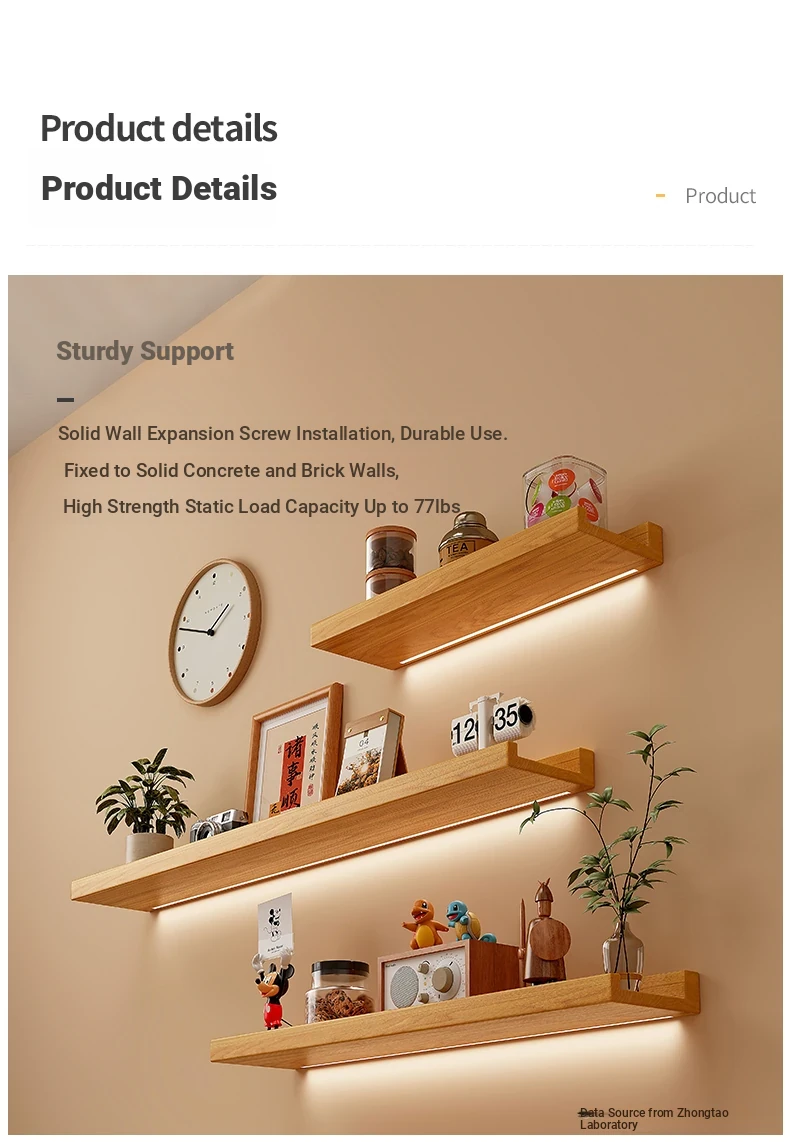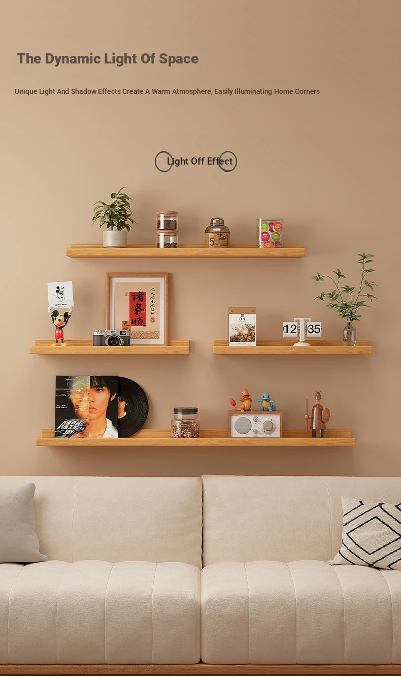 Solid Wood No-Drill Wall Shelf - Elegant Horizontal Display Rack for Living Room, TV Wall Decor & Showcase Storage Solutions