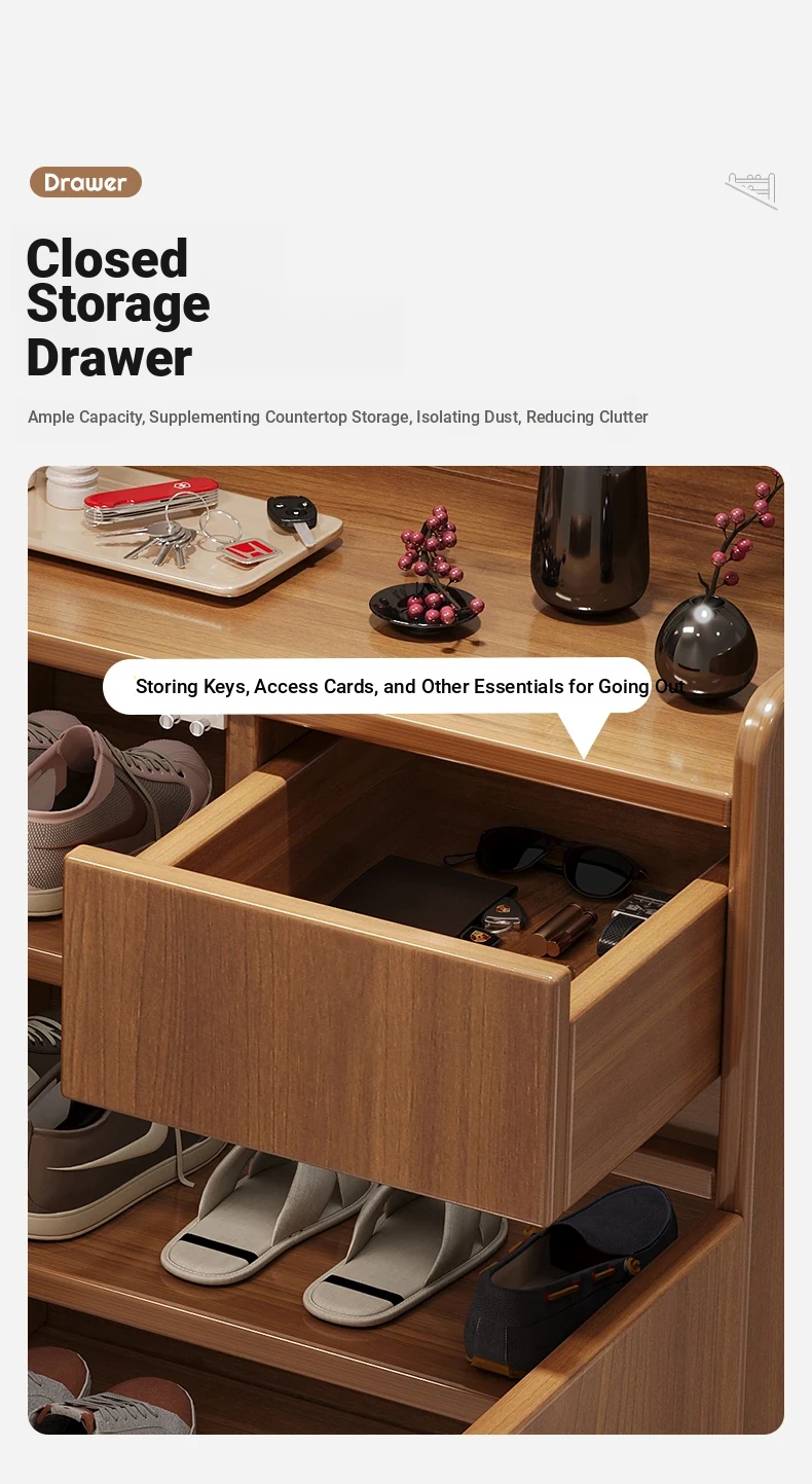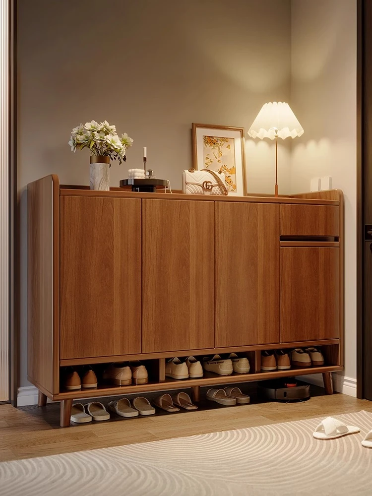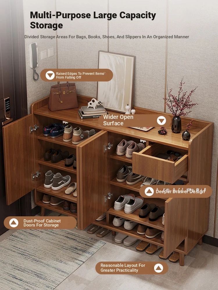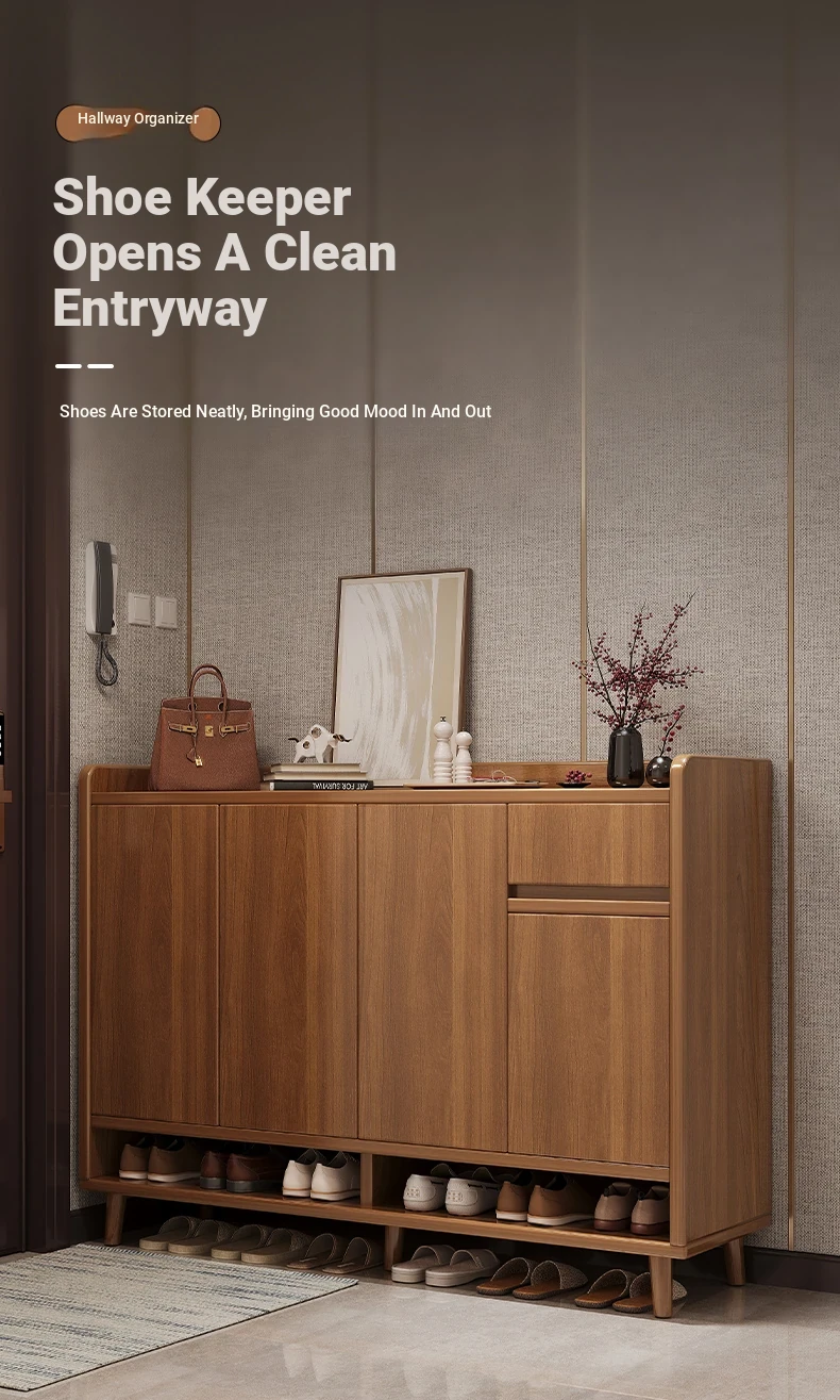 Solid Wood Shoe Cabinet - Stylish Entryway Storage Solution for Home, Modern Chinese Design, Wall-Mounted, 2024 Trending Shoe Rack for Entrance Hallway