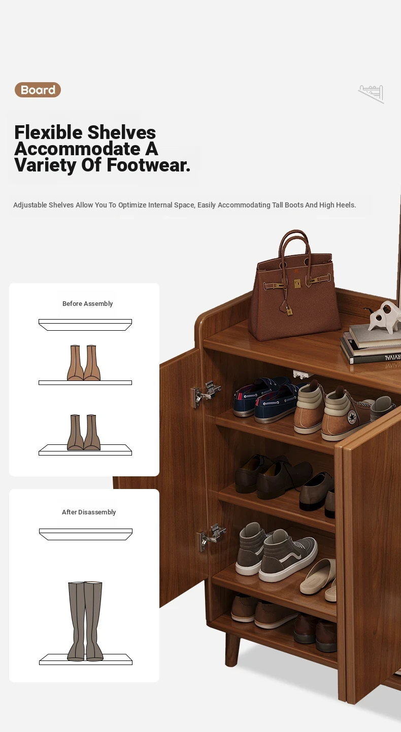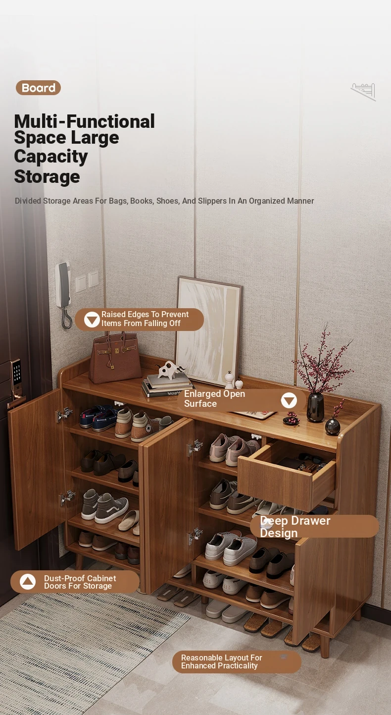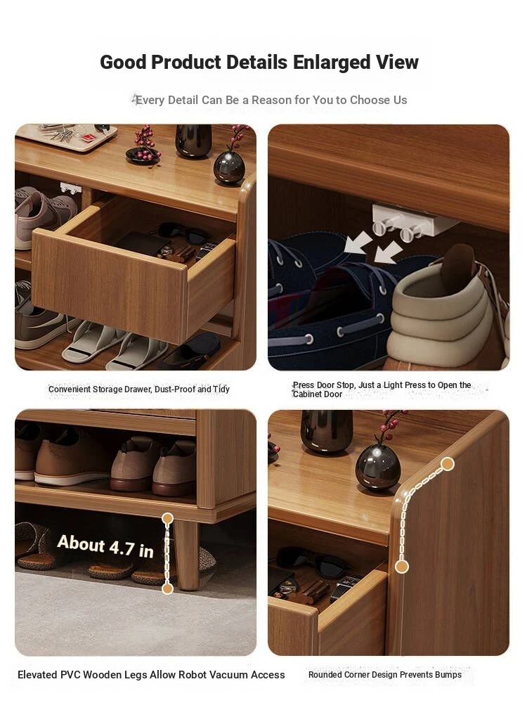 Solid Wood Shoe Cabinet - Stylish Entryway Storage Solution for Home, Modern Chinese Design, Wall-Mounted, 2024 Trending Shoe Rack for Entrance Hallway