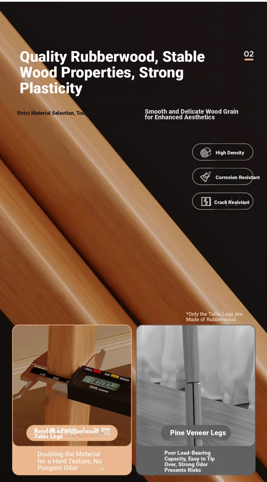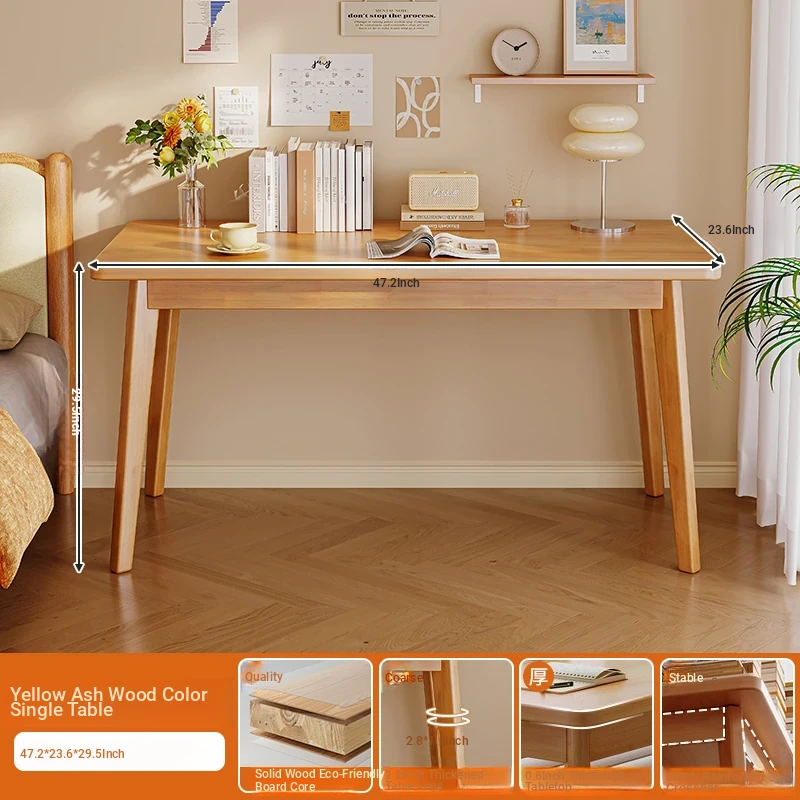 【Thickened Solid Wood Eco-Panel Core Desktop】120*60Cm Yellow Fir Color(Rubber wood table legs)