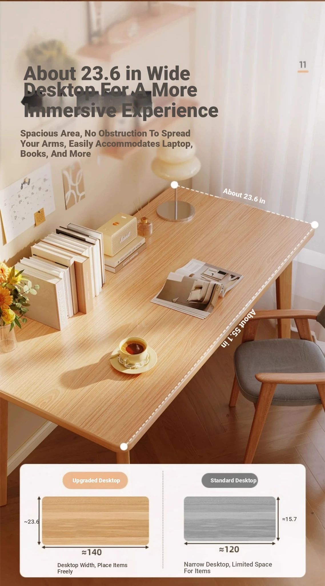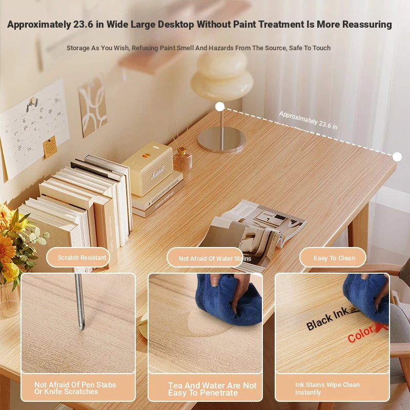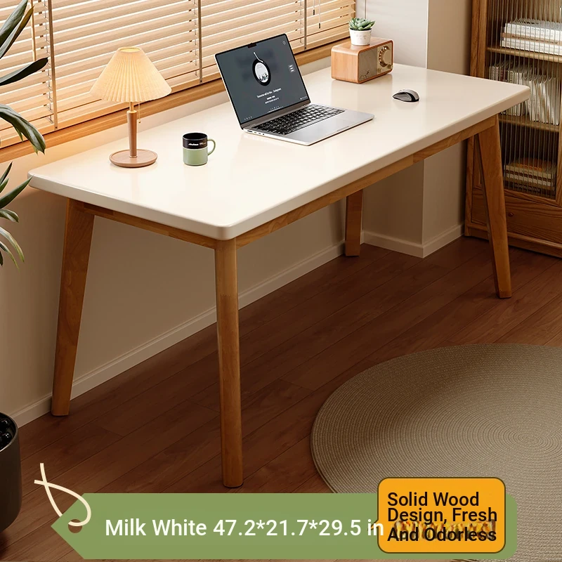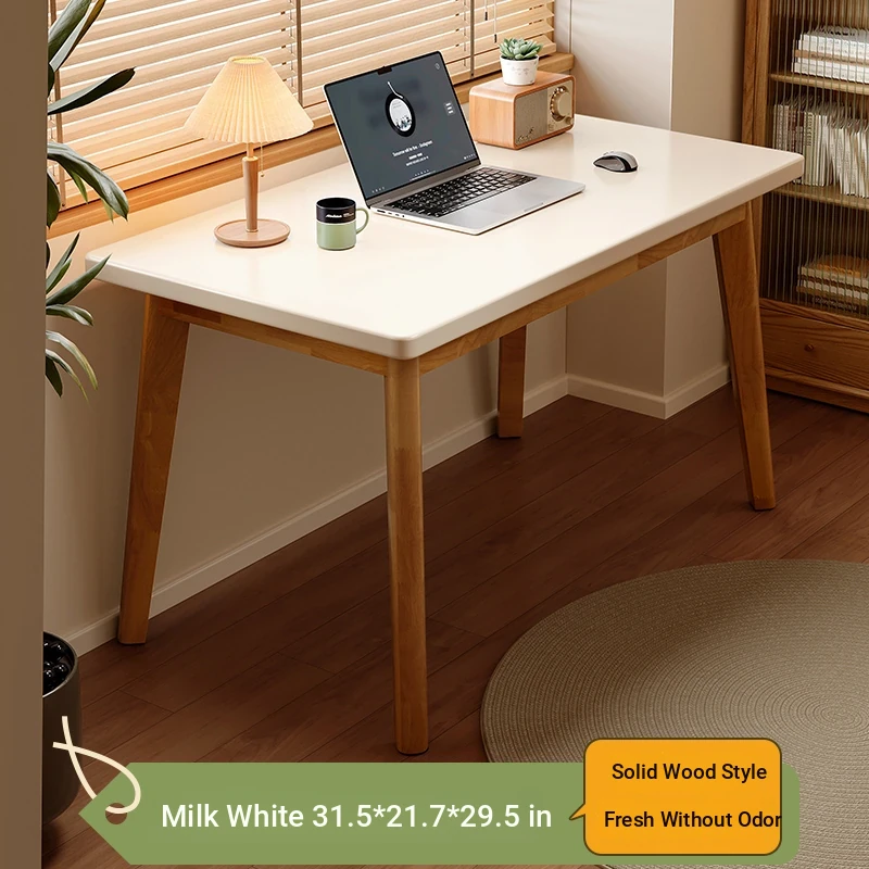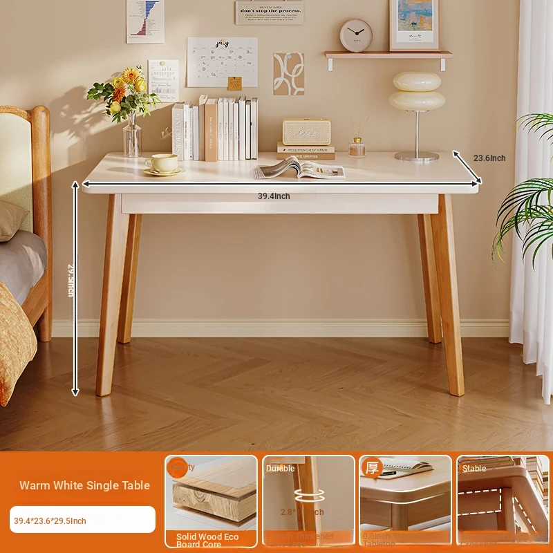 [Thick Solid Wood Ecological Board Core Desktop] 39.37in*23.62in Warm White(Rubber wood table legs)