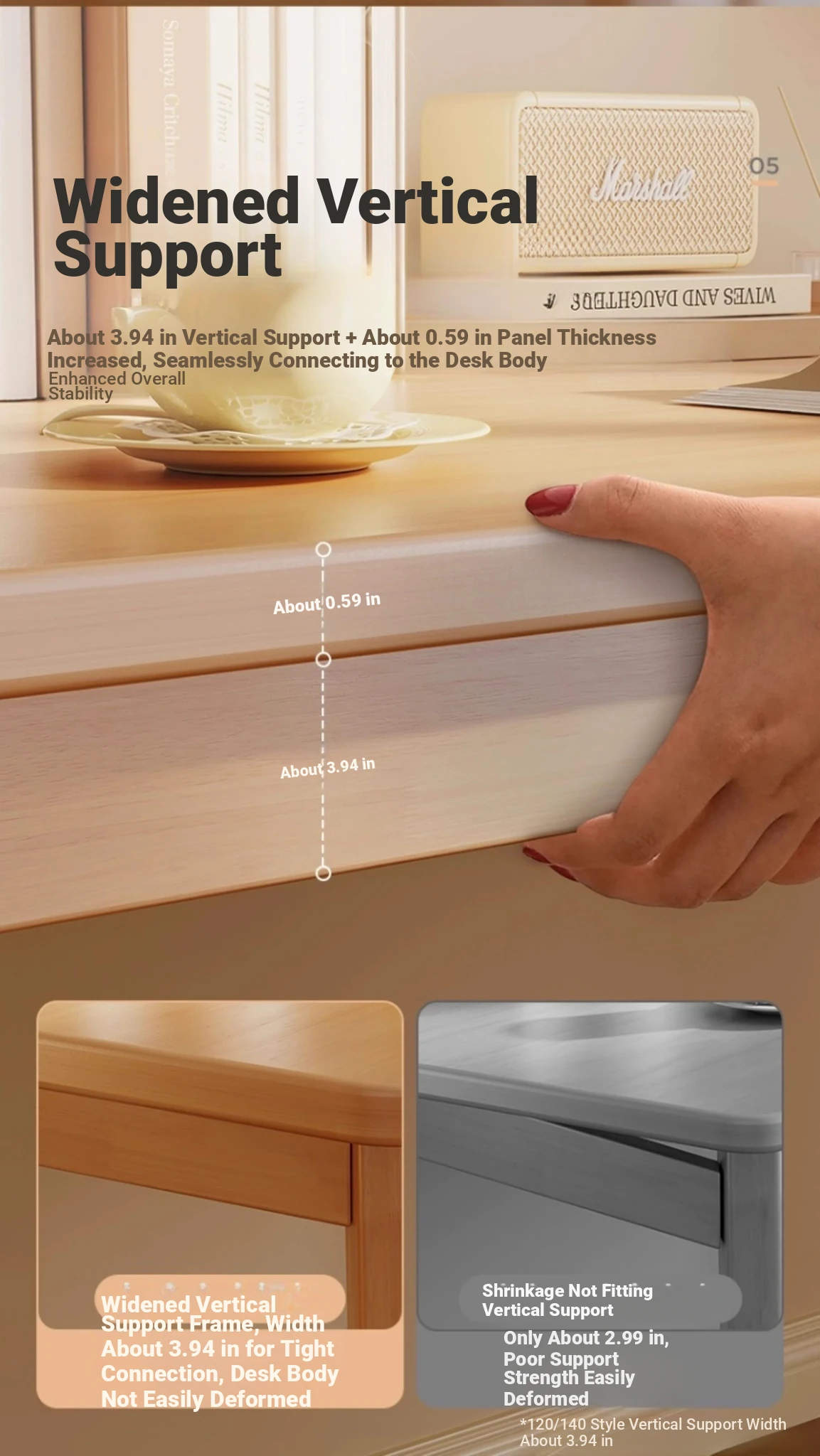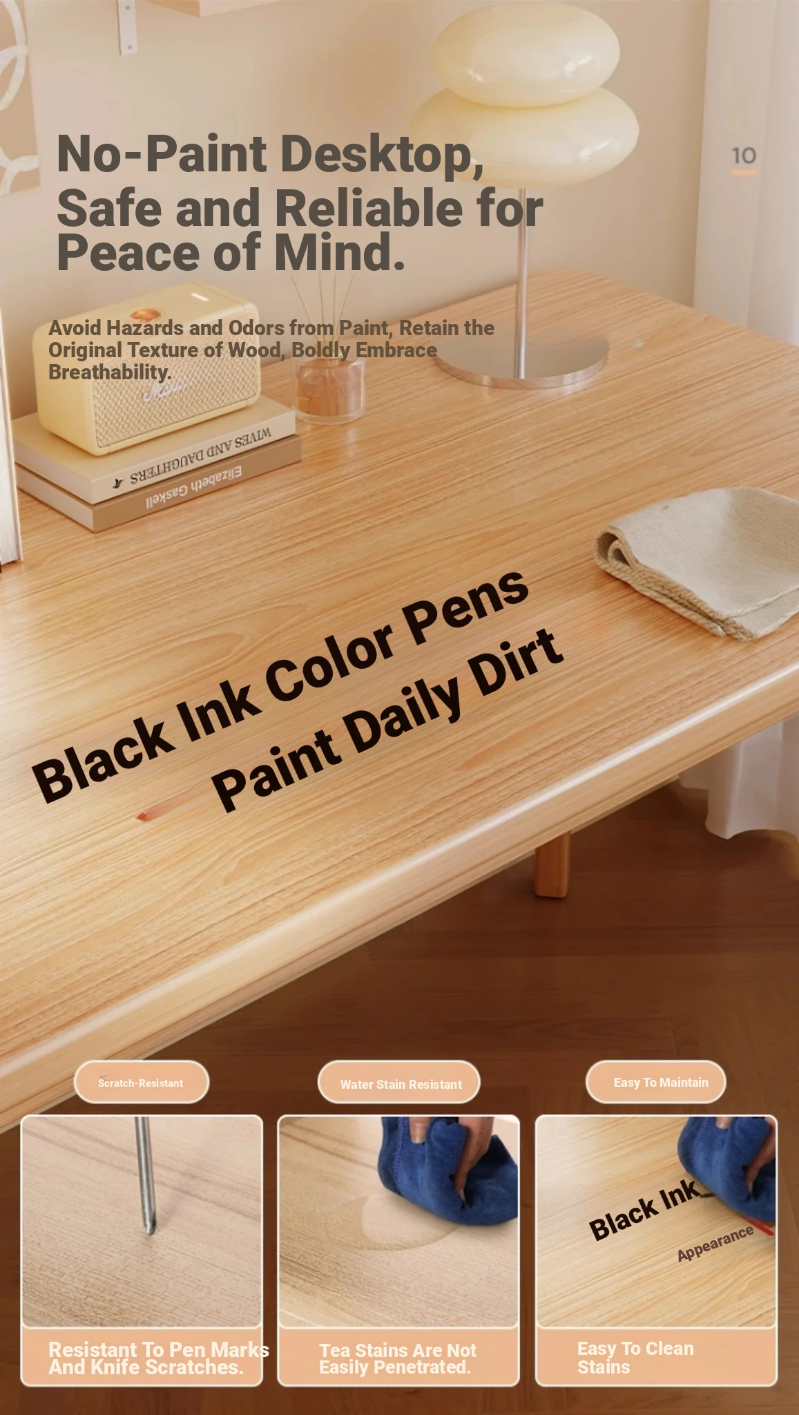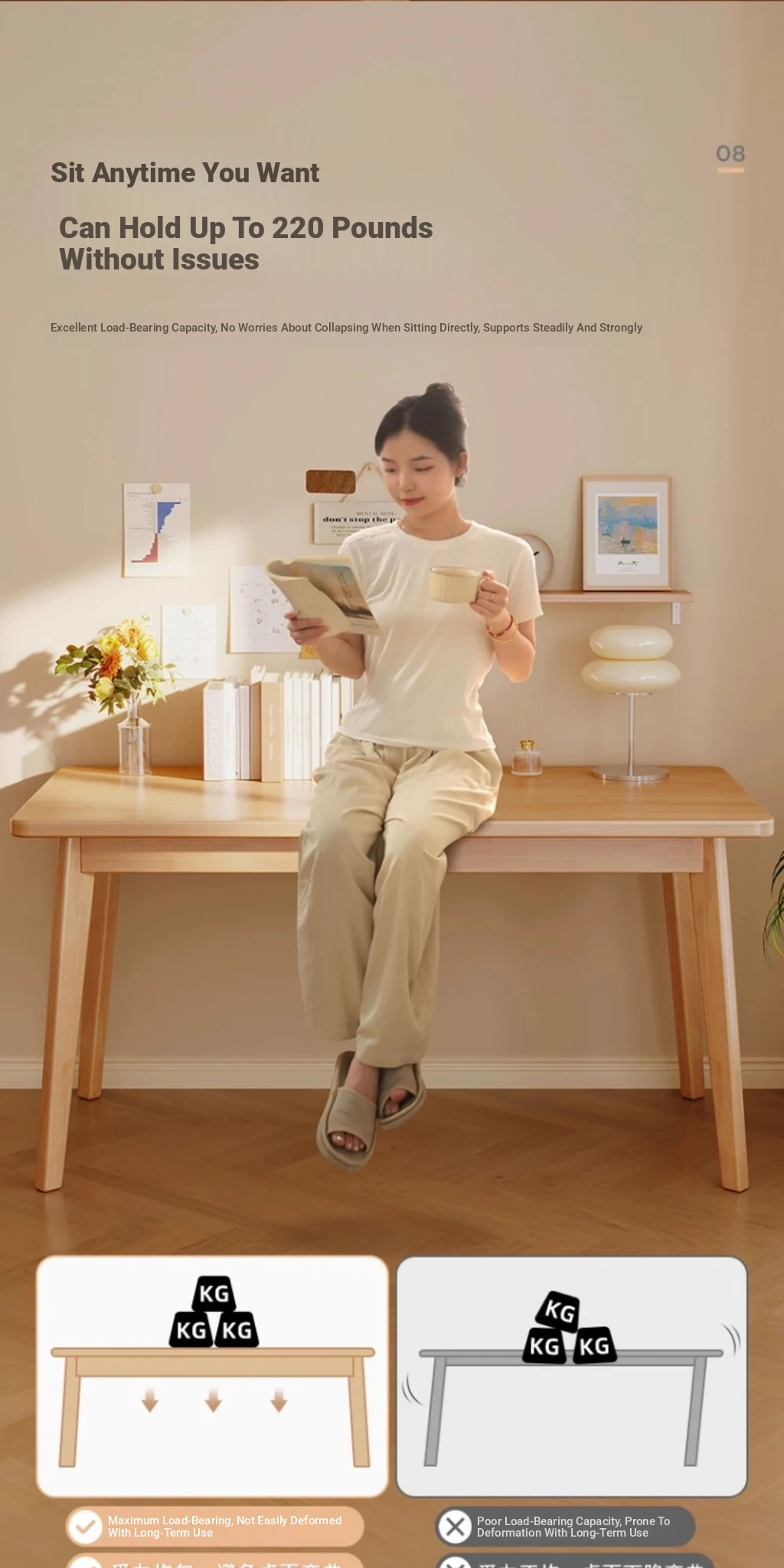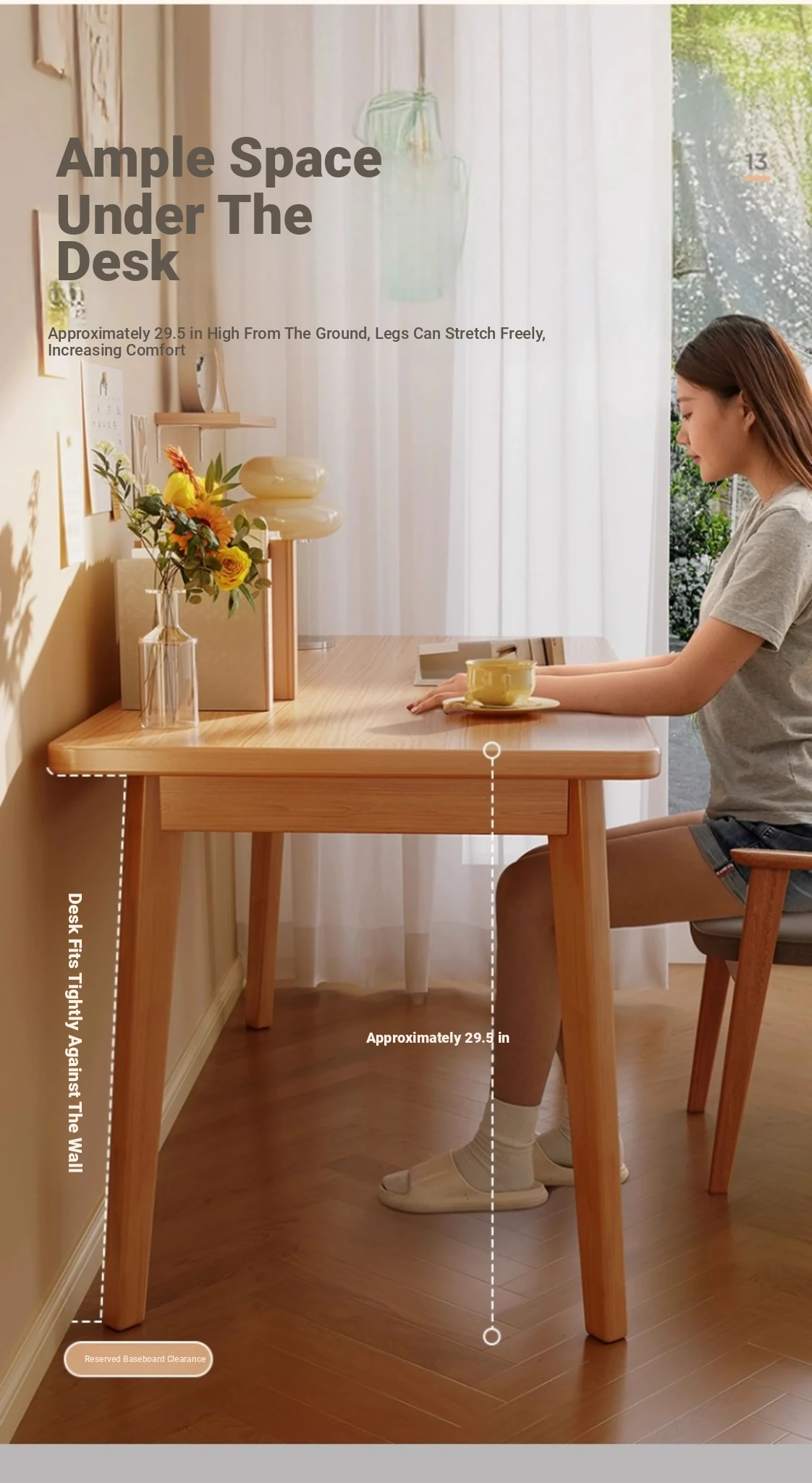 [Thick Solid Wood Ecological Board Core Desktop] 39.37in*23.62in Warm White(Rubber wood table legs)