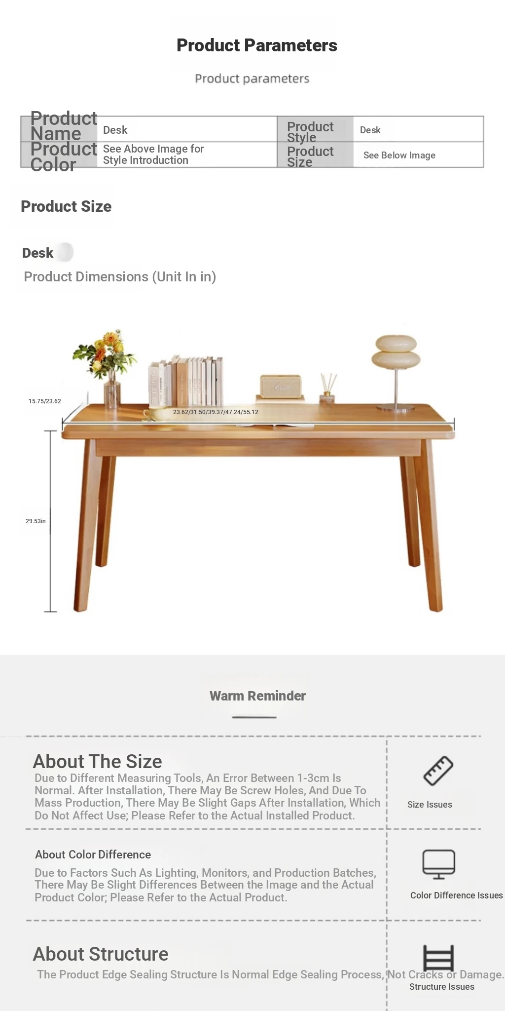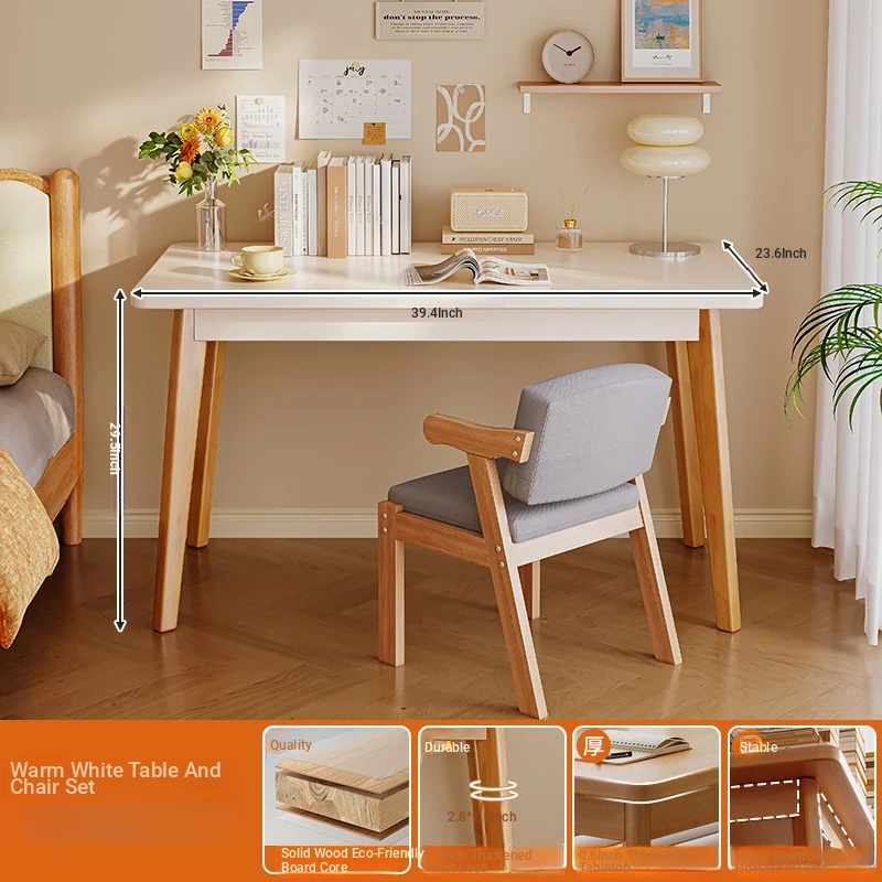 [Solid Wood Table and Chair Combination] 39.37in*23.62in Warm White