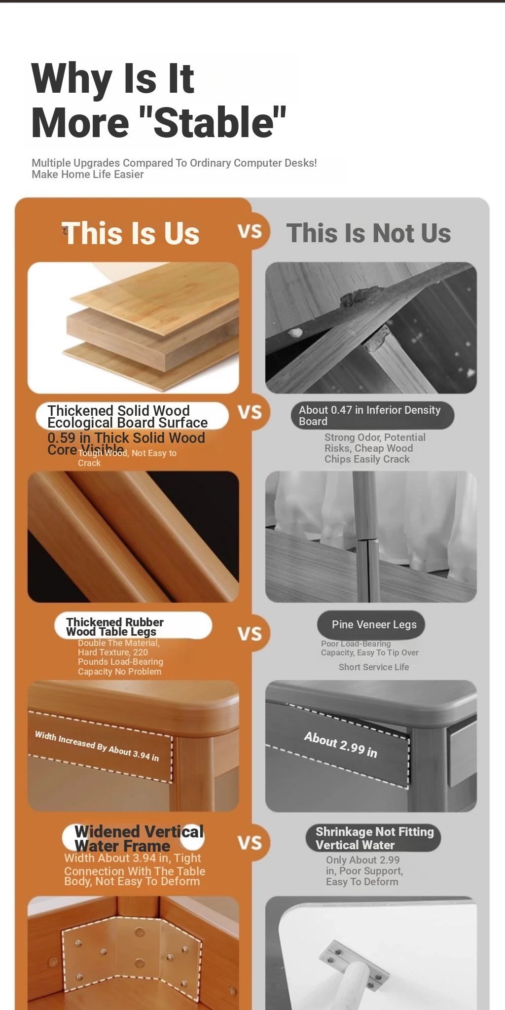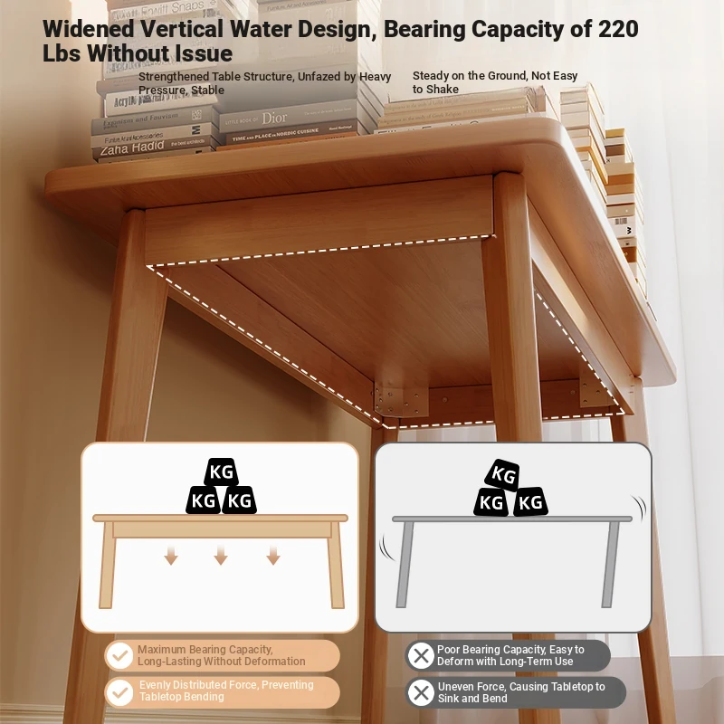 【Thickened Solid Wood Eco-Panel Core Desktop】100*60Cm Yellow Fir Color(Rubber wood table legs)