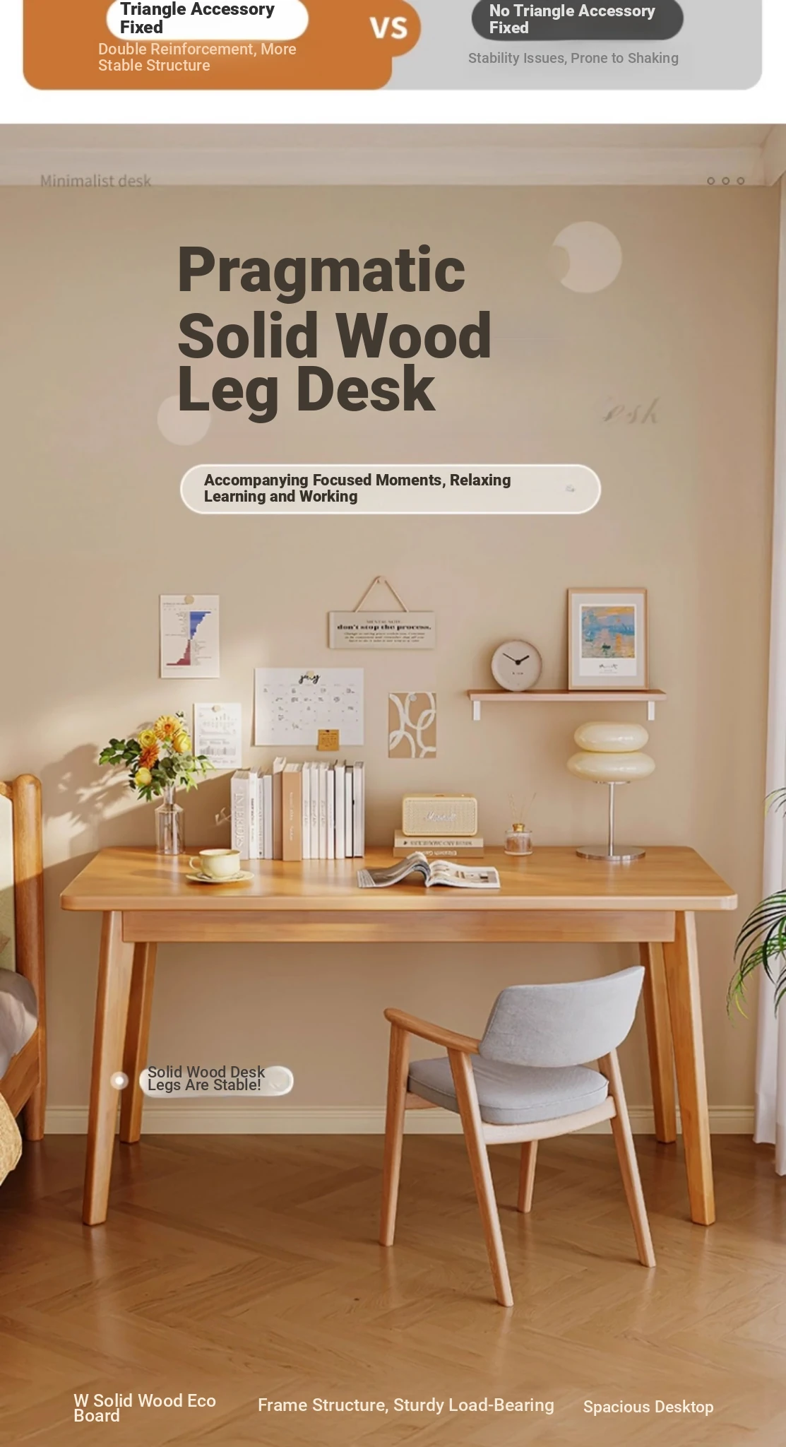 Solid Wood Writing Desk for Home, Ideal for Students and Professionals - Minimalist Design for Bedroom or Office Use, Perfect Computer Workstation and Study Table