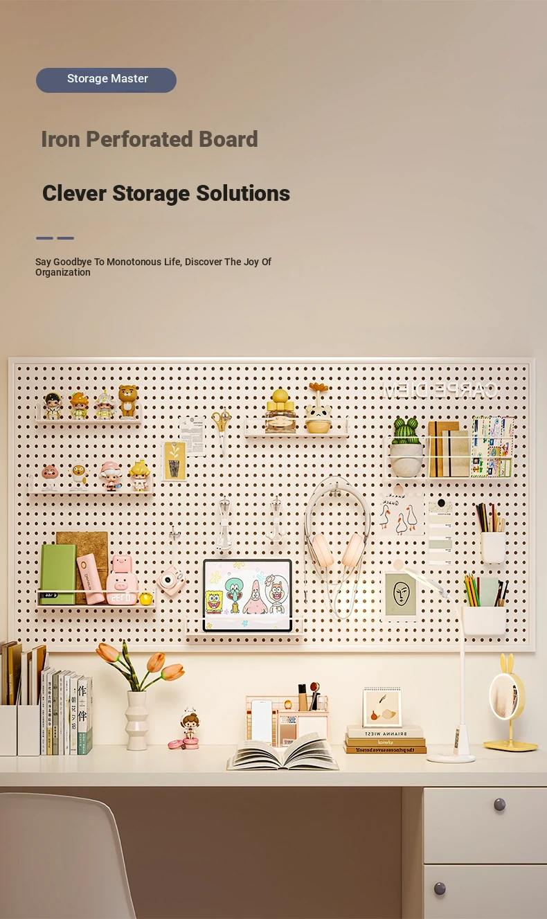Stainless Steel Desktop Pegboard Organizer - Stylish Wall-Mounted Storage for Office, Study, and Dorm Room Essentials