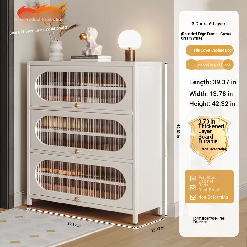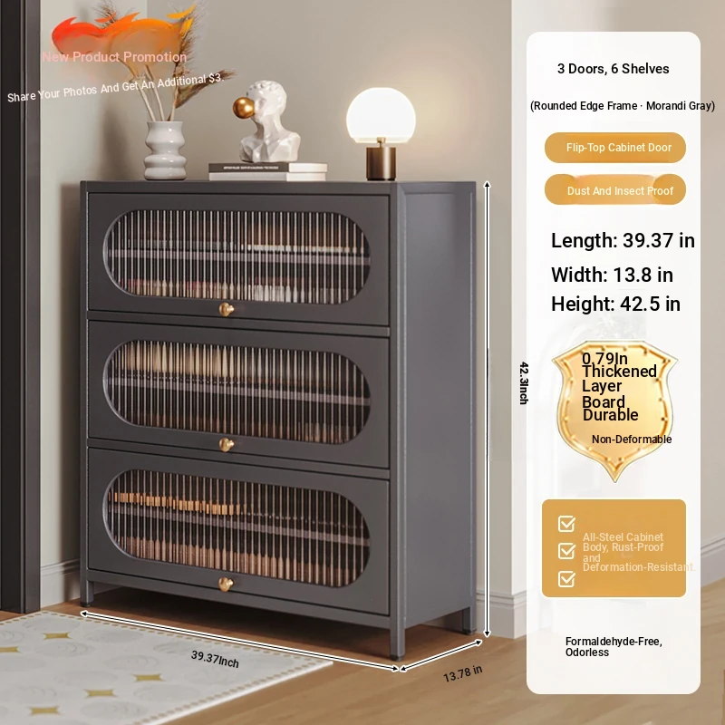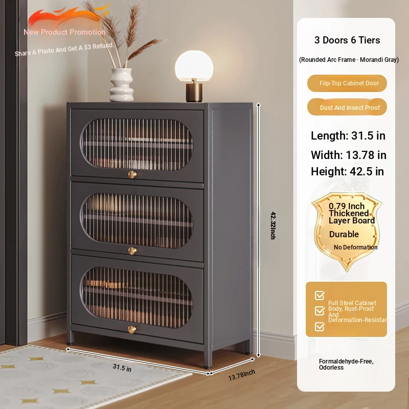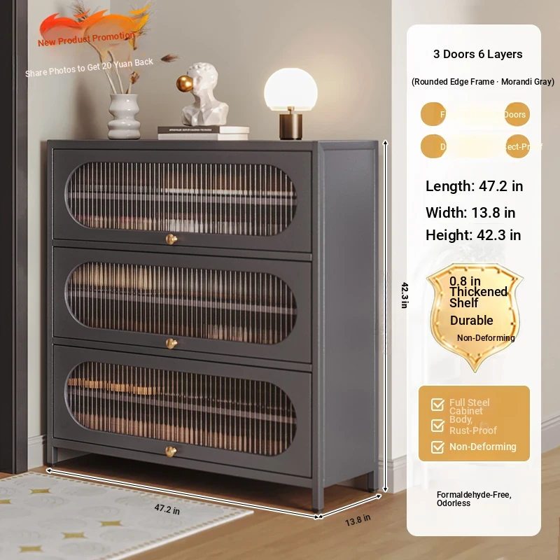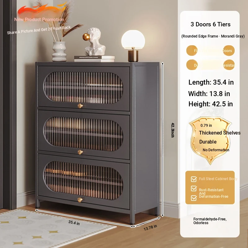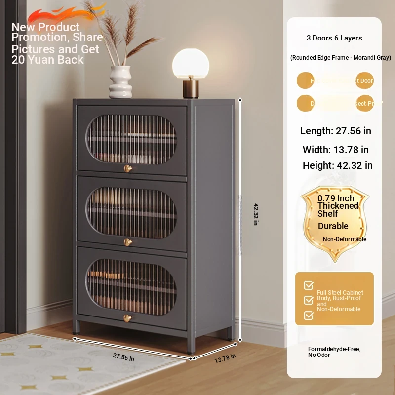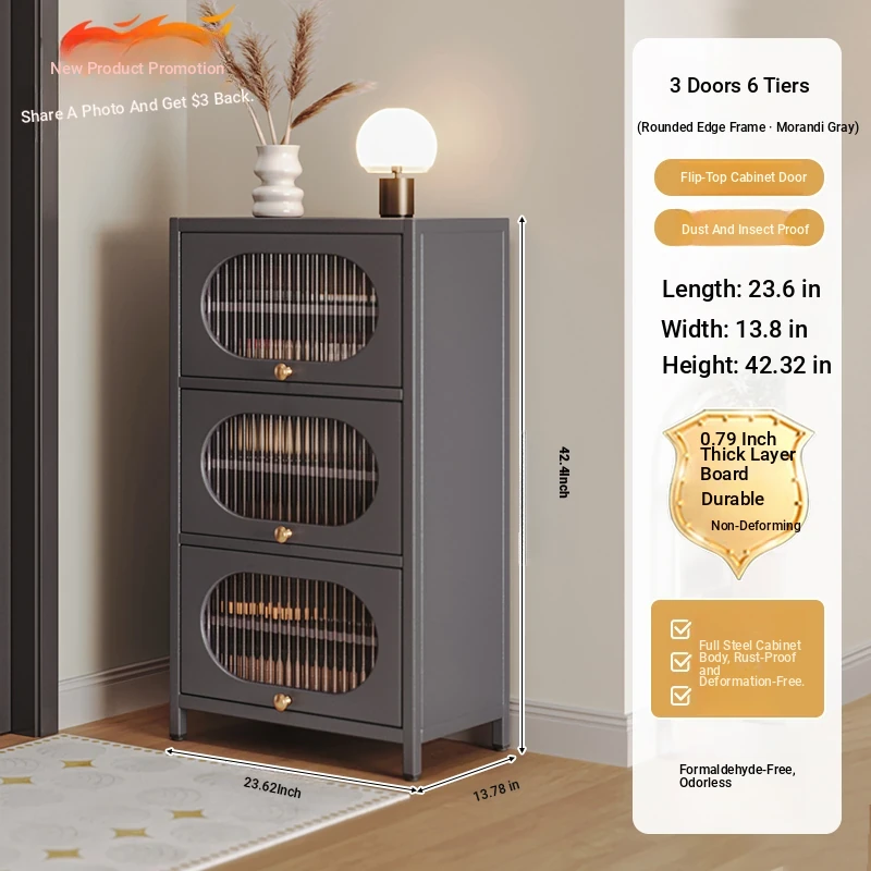 [Can Hold about 30 Pairs] 3 Doors, 6 Floors, 3937.01in-1377.95in-4232.29inorandi Gray