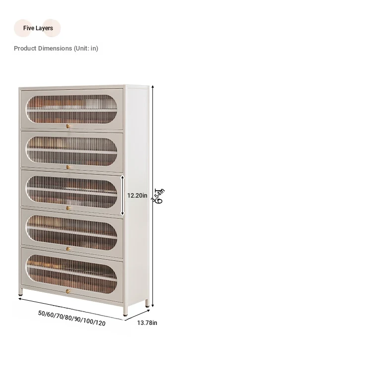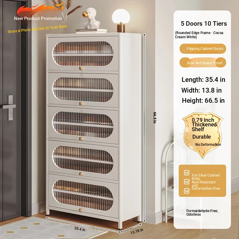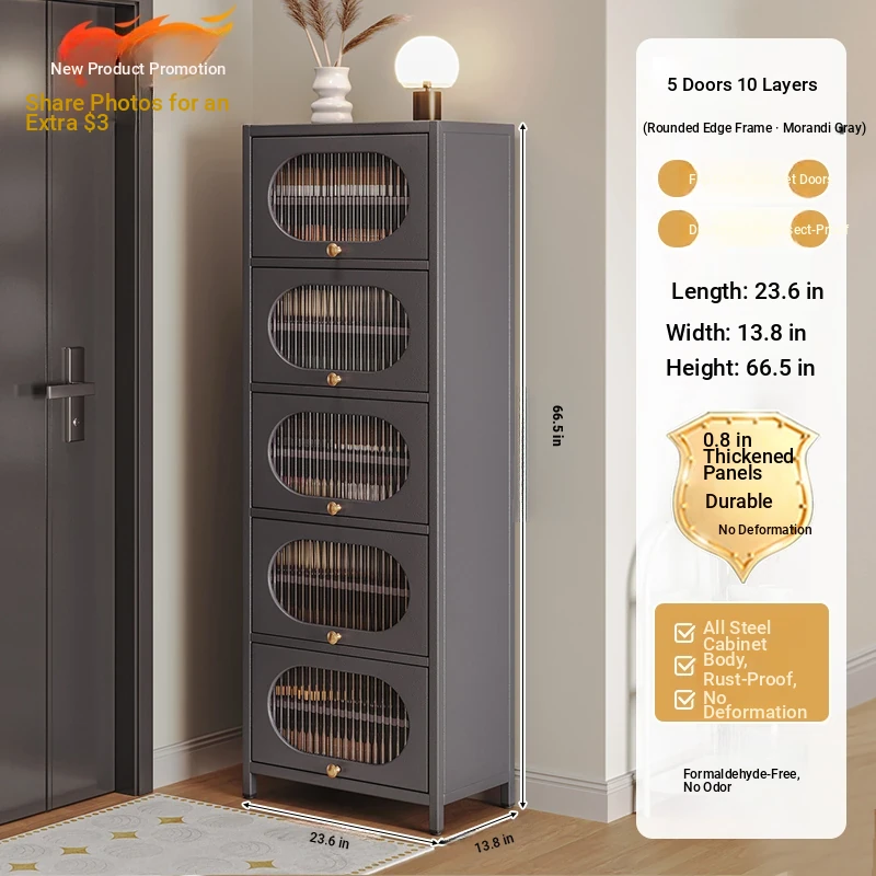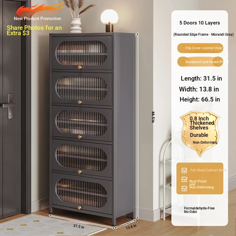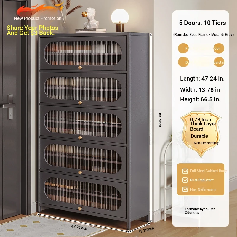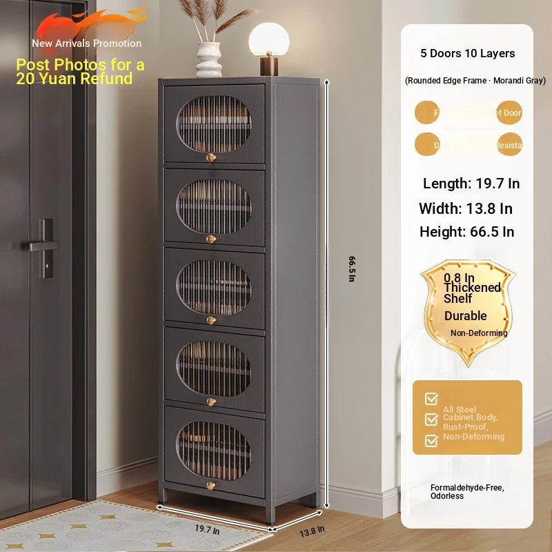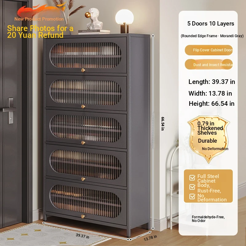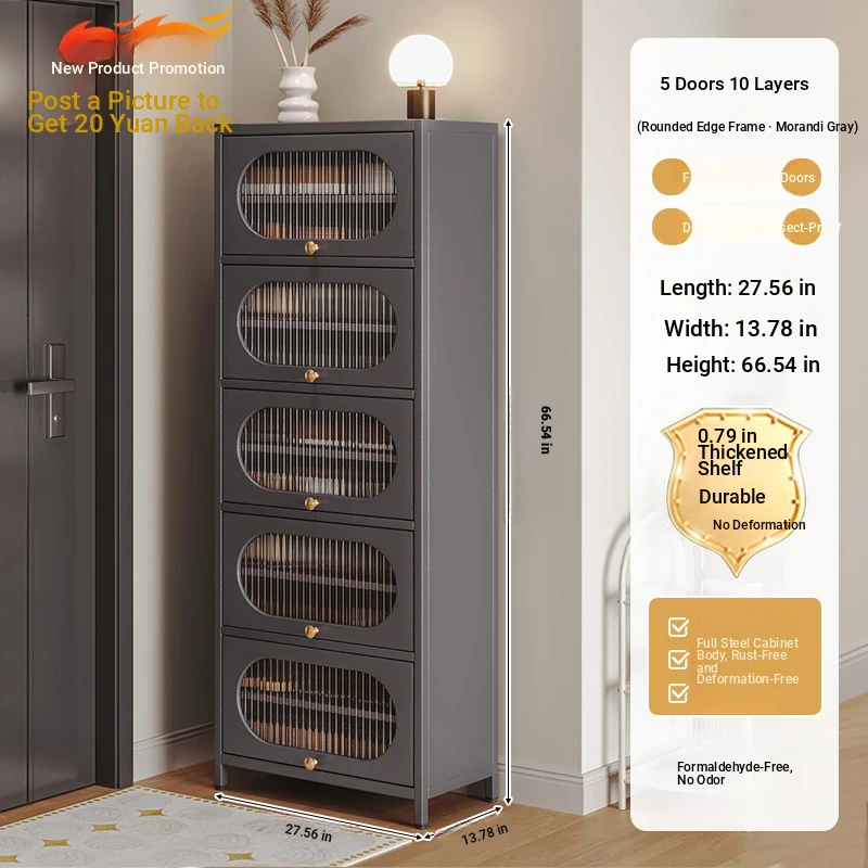 [Can Hold about 50 Pairs] 5 Doors, 10 Floors, 3937.01in-1377.95in-6653.55inorandi Gray