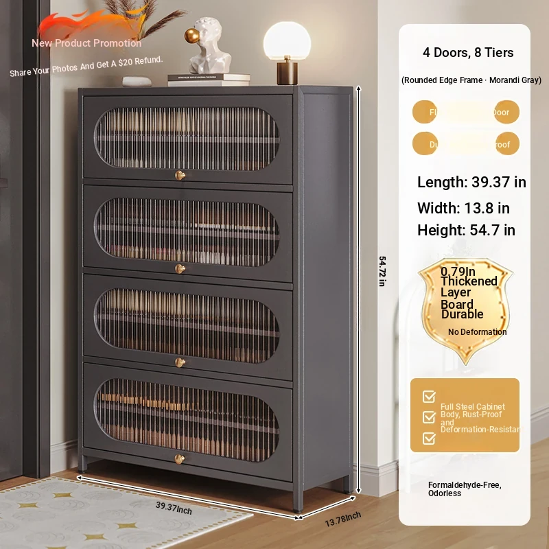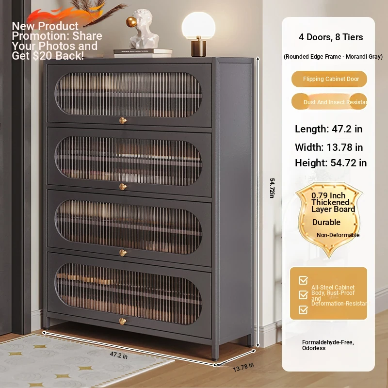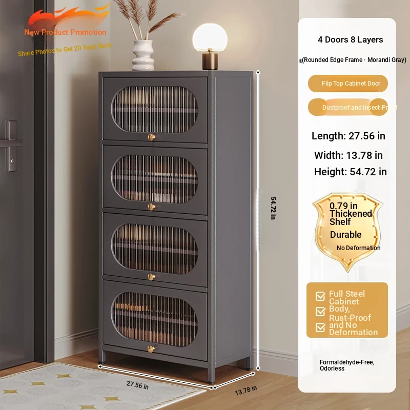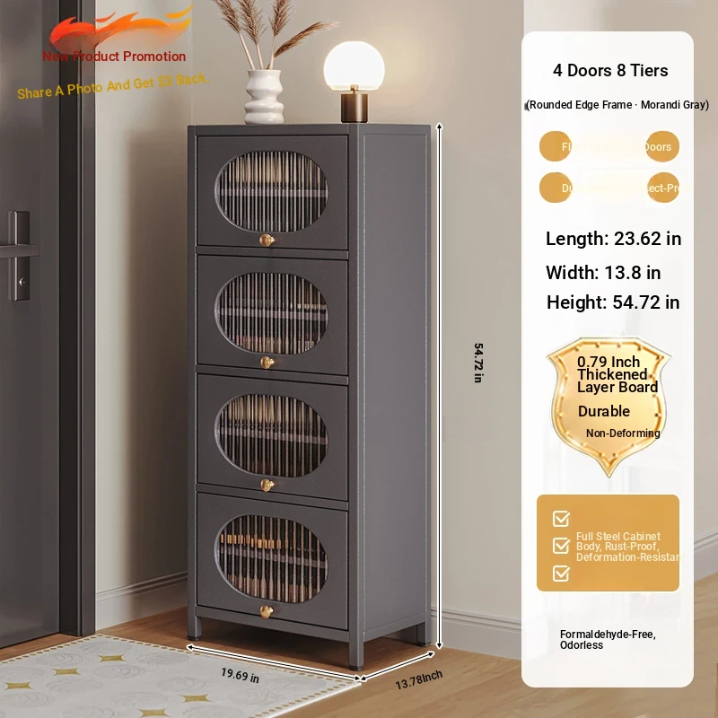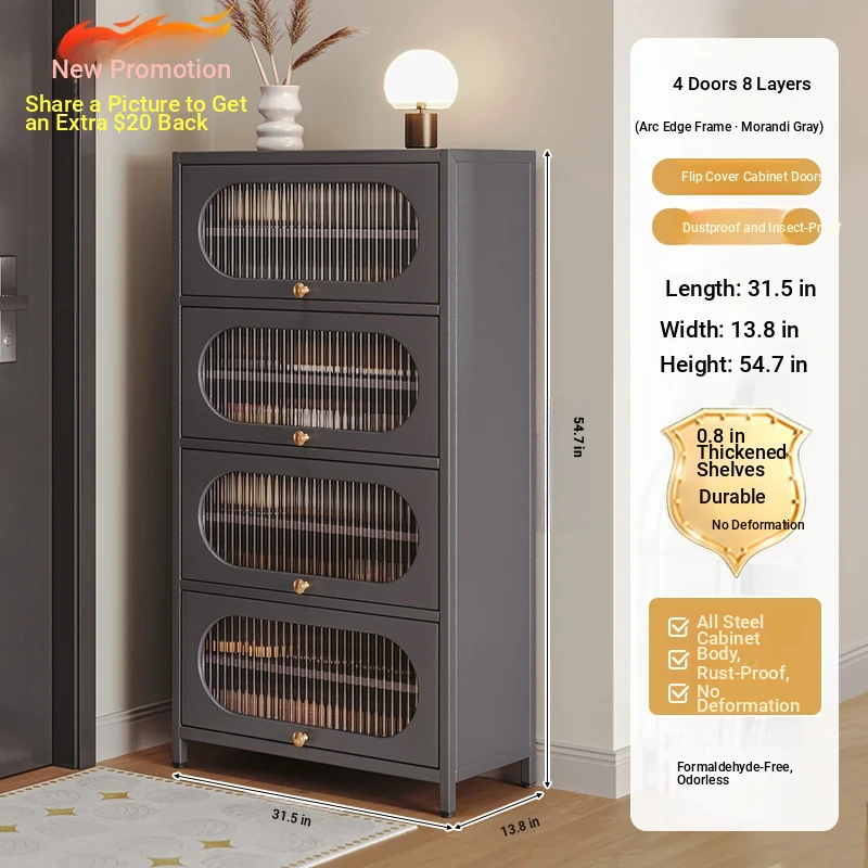 [Can Hold about 20 Pairs] 4 Doors, 8 Floors, 1968.51in-1377.95in-5472.44inorandi Gray