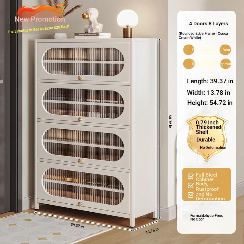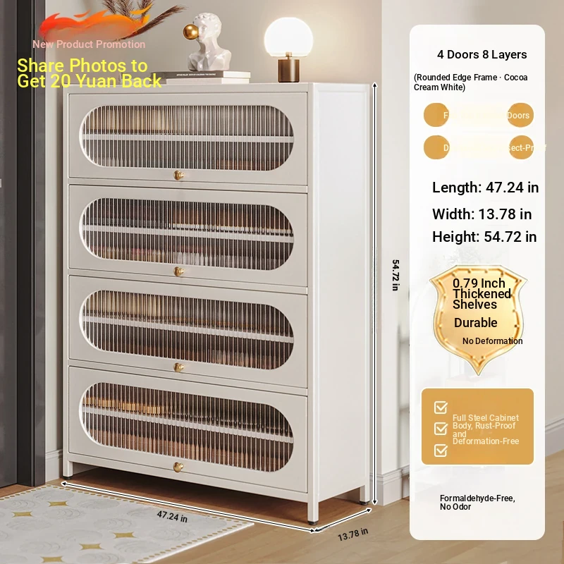 [Can Hold about 40 Pairs] 4 Doors, 8 Floors, 3937.01in-1377.95in-5472.44inorandi Gray