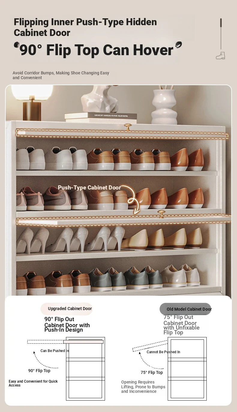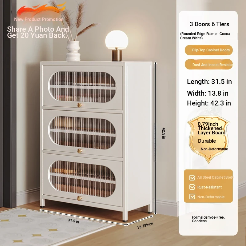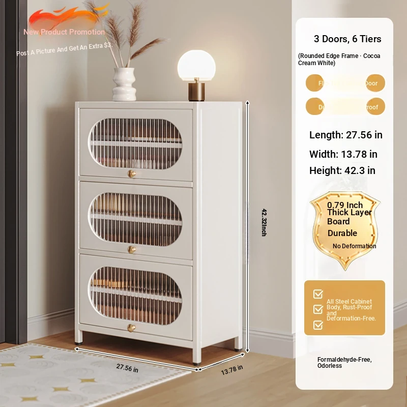 [Can Hold Approximately 18-20 Pairs] 3 Doors, 6 Layers, 70-35-107.5 Cocoa Cream White