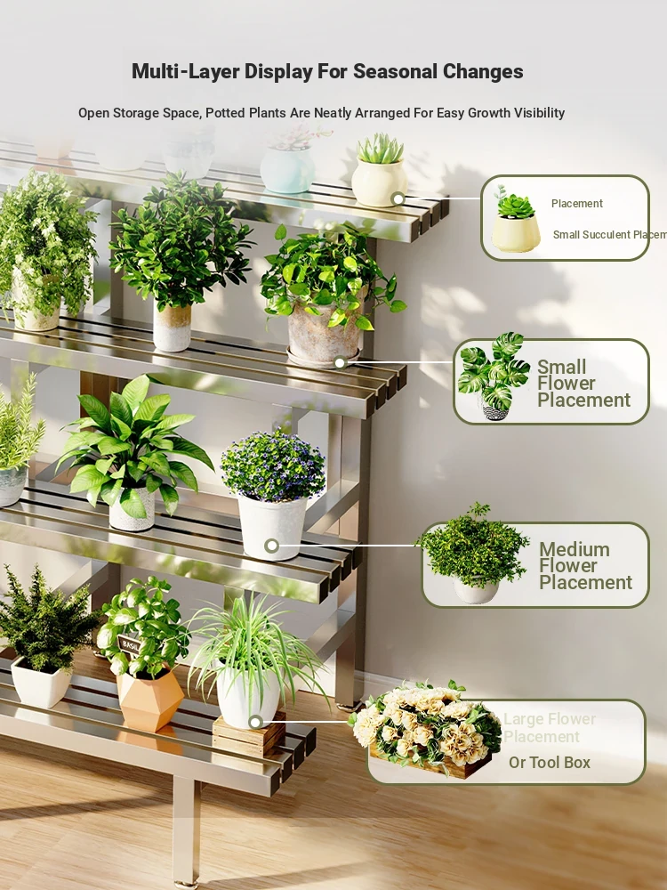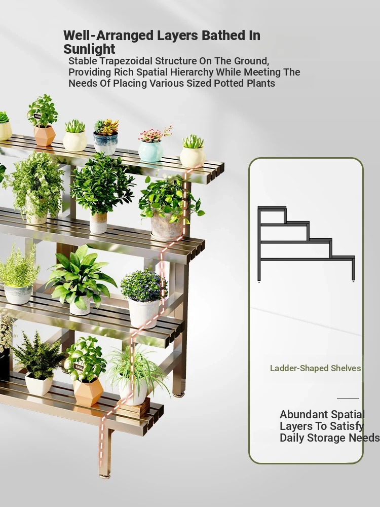 Stainless Steel Succulent Plant Stand - Stylish Outdoor Balcony Flower Pot Holder for Patio and Garden - 2024 New Model