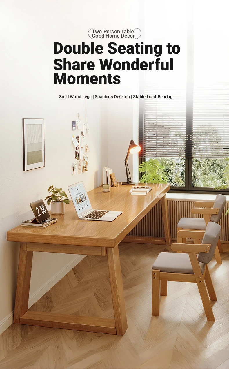 Stylish Double Desk for Students - Versatile Home and Office Computer Table with Solid Wood Legs, Perfect for Bedrooms, Living Rooms, and Study Areas, Ideal for Writing and Working