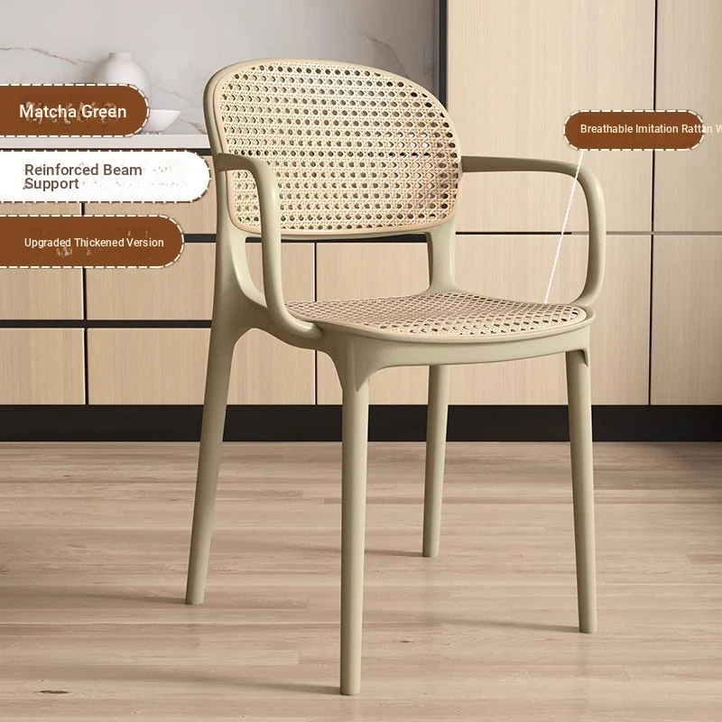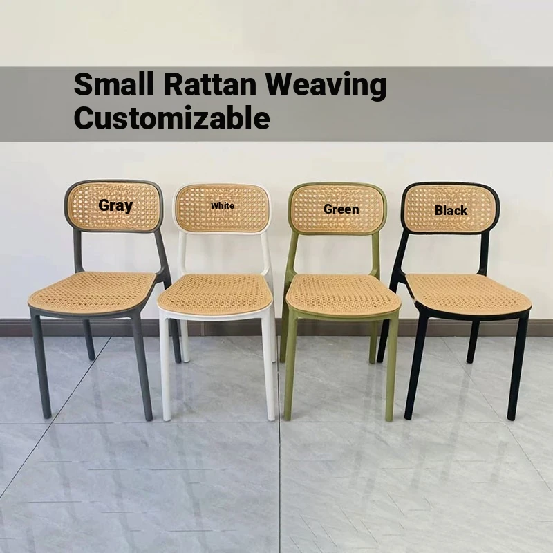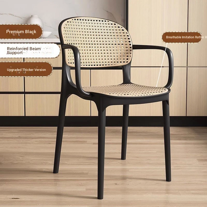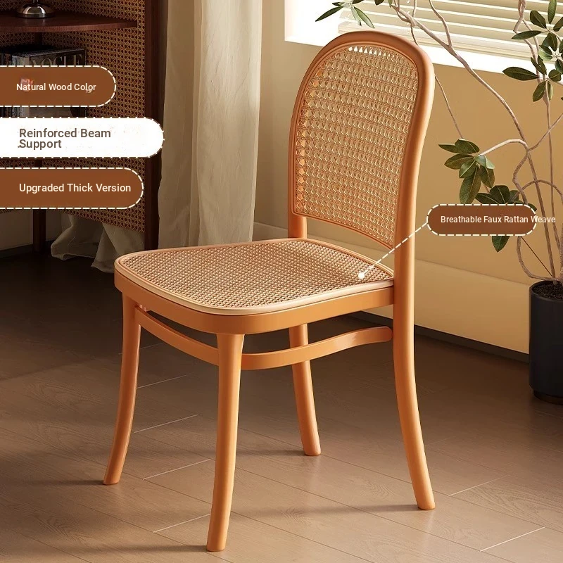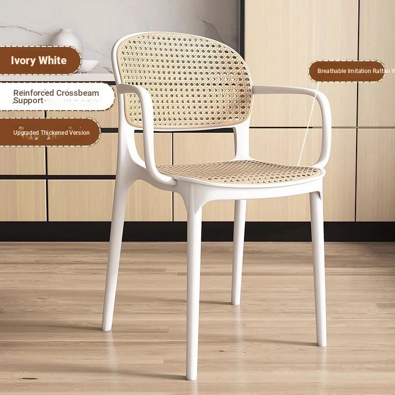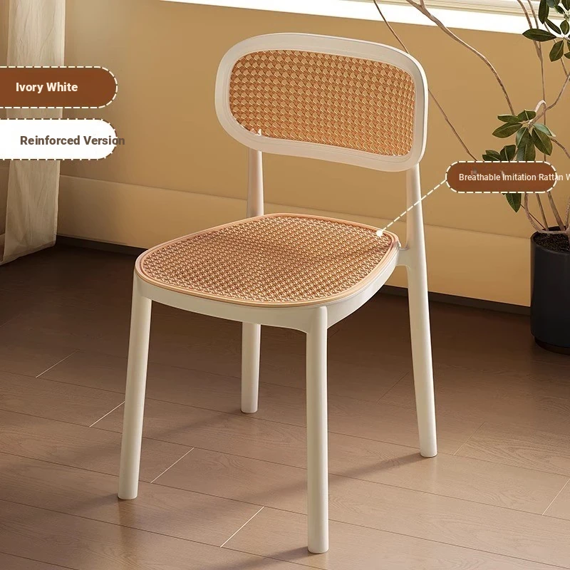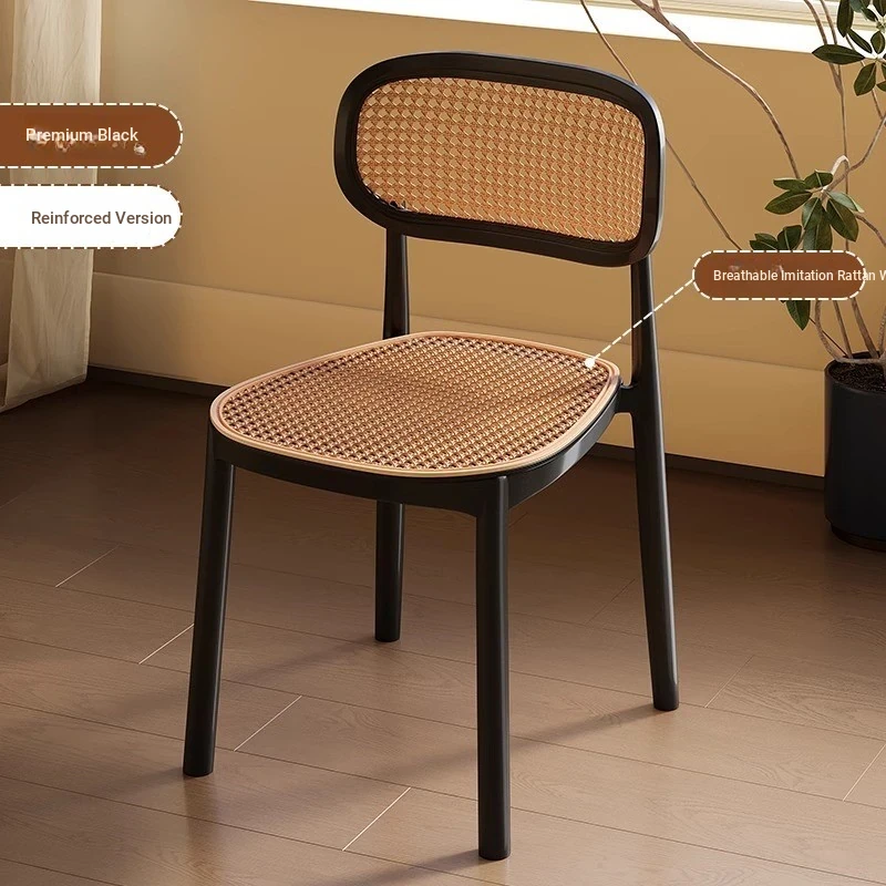 Stylish Italian-Inspired Rattan Plastic Chair - Comfortable and Breathable Dining Stool for Home Use, Thickened Design, Ideal for Commercial Spaces with a Supportive Backrest