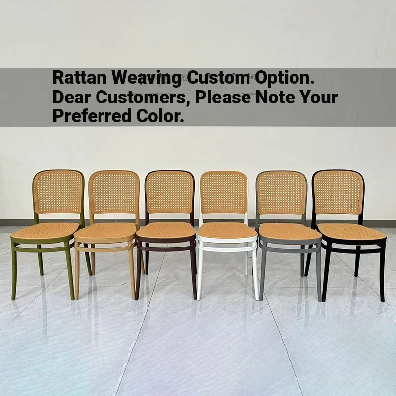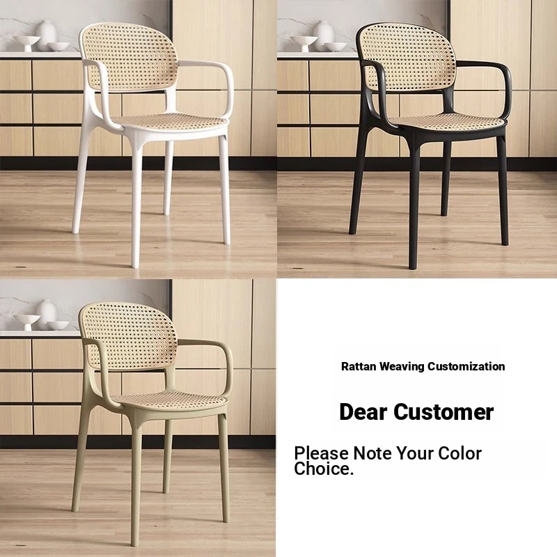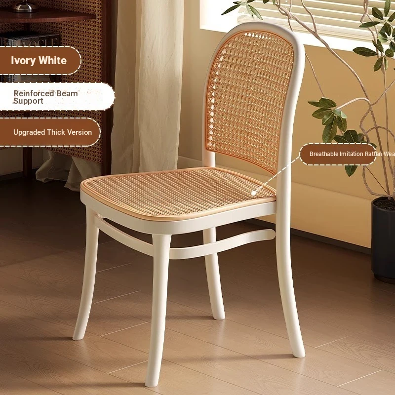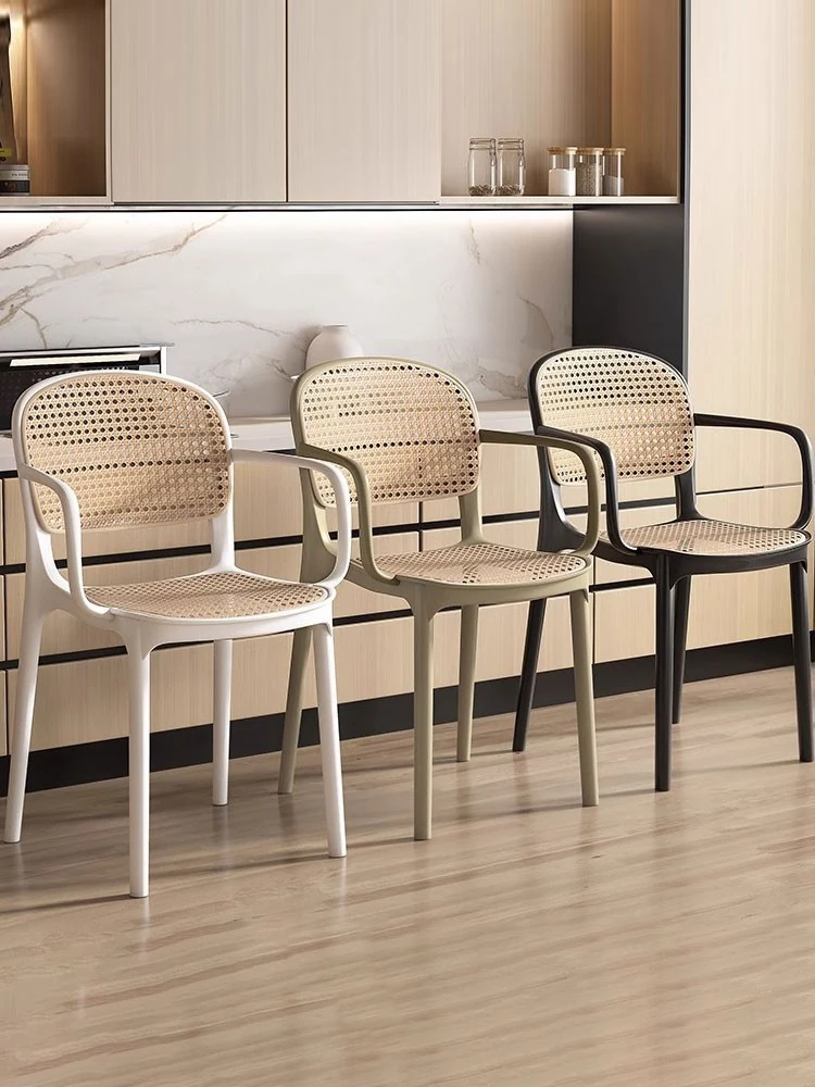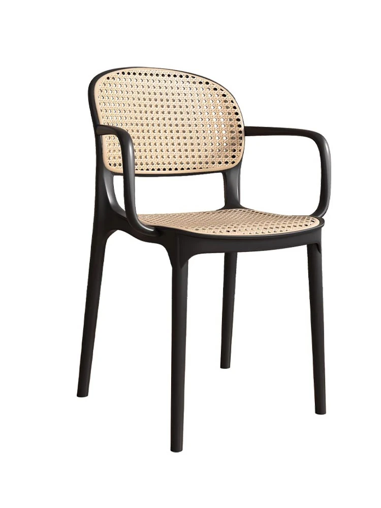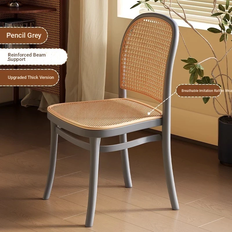 Stylish Italian-Inspired Rattan Plastic Chair - Comfortable and Breathable Dining Stool for Home Use, Thickened Design, Ideal for Commercial Spaces with a Supportive Backrest
