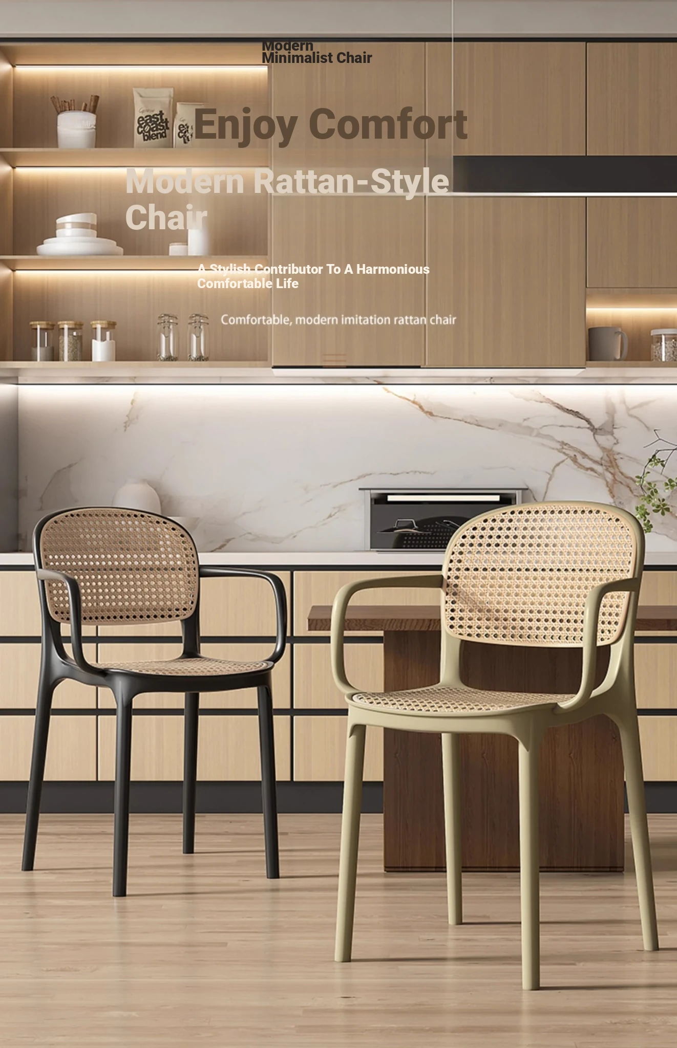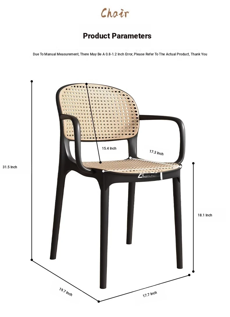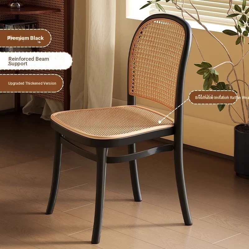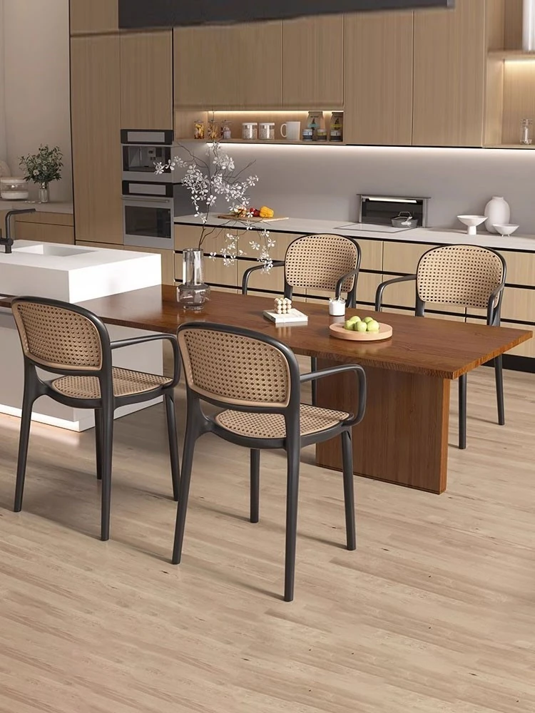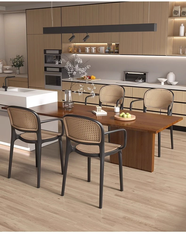 Stylish Italian-Inspired Rattan Plastic Chair - Comfortable and Breathable Dining Stool for Home Use, Thickened Design, Ideal for Commercial Spaces with a Supportive Backrest