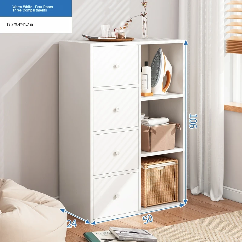 [New Model] 4-Door 3-Compartment White 19.69in*9.45in*41.73inω