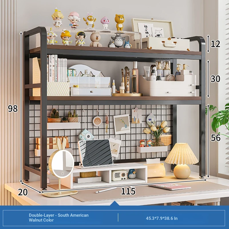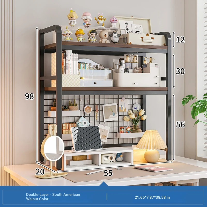 【Includes Pegboard】55*20*98Cm Double Layer - South American Walnut Wood + Black Frame★