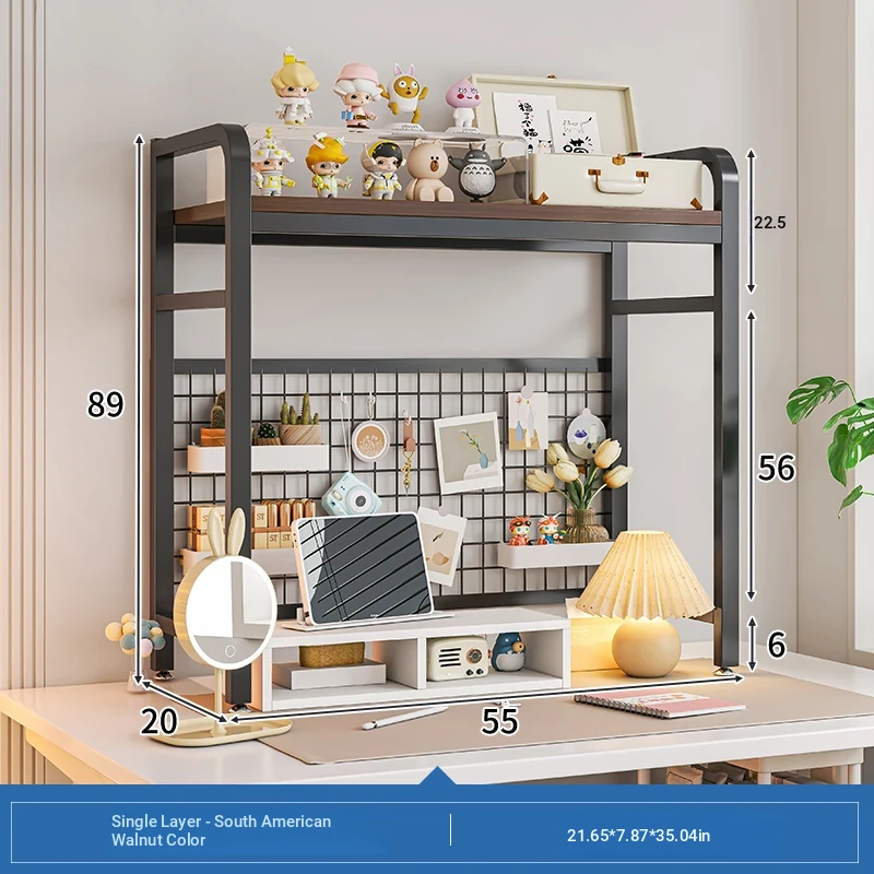 【Includes Pegboard】55*20*89Cm Single-Tier - South American Walnut + Black Frame ★(Reserved Height Adjustment Holes)