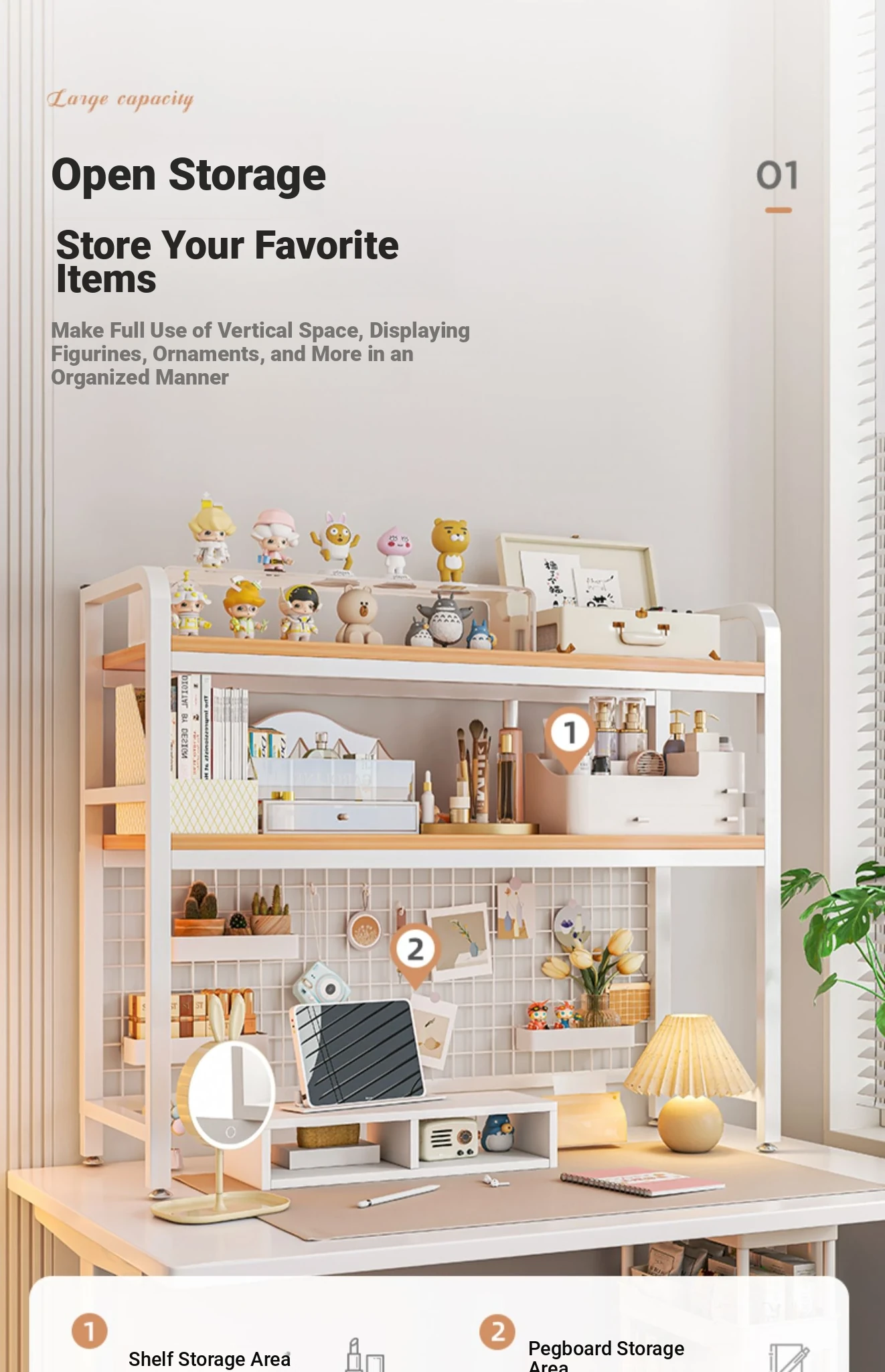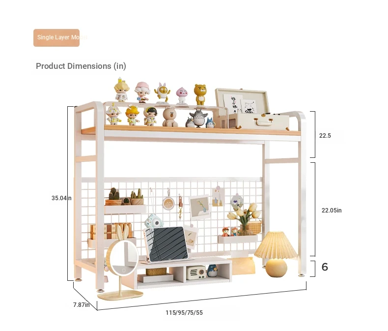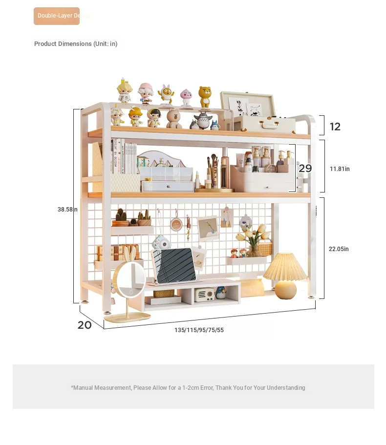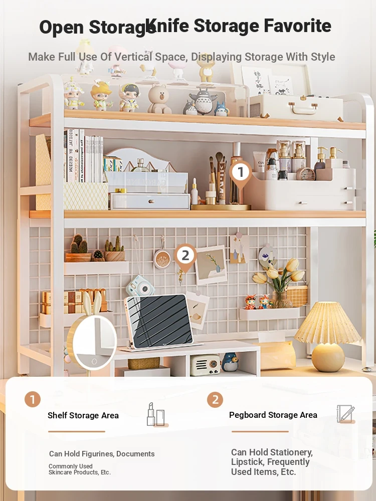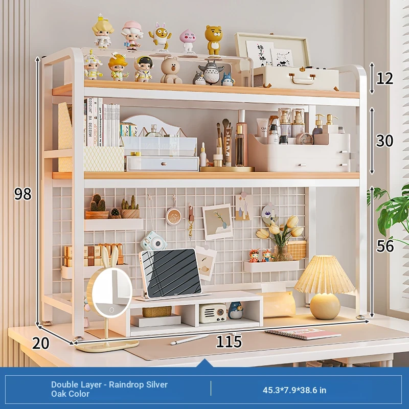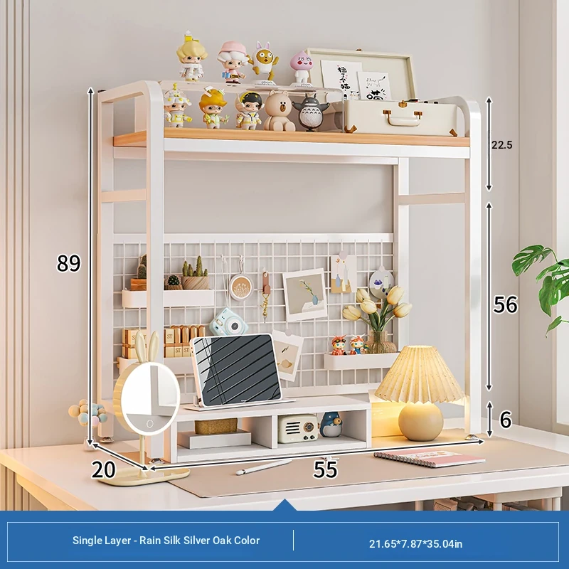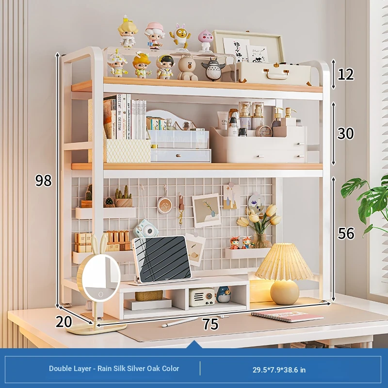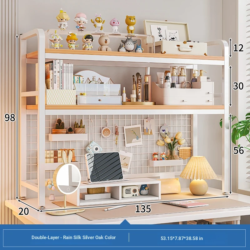 【Includes Pegboard】55*20*98Cm Double Layer - Rain Silk Silver Oak + White Frame★