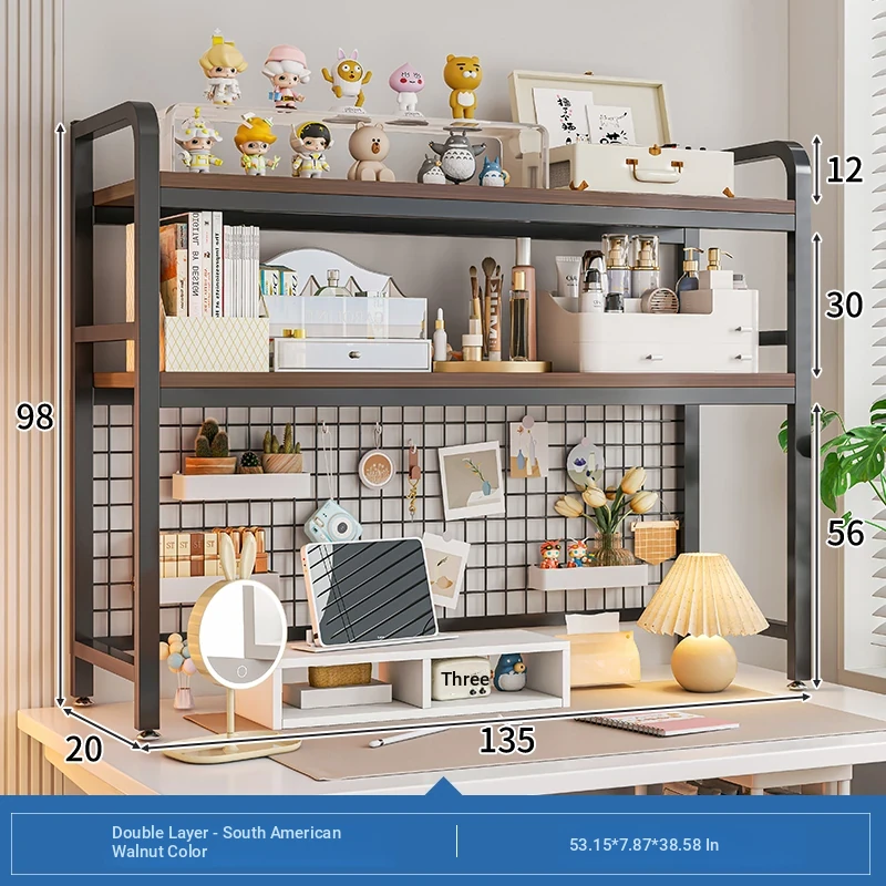 【Includes Pegboard】135*20*98Cm Double Layer - South American Walnut + Black Frame★