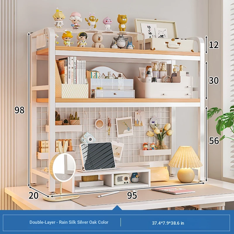 【Includes Pegboard】95*20*98Cm Double Layer - Silver Oak with White Frame★