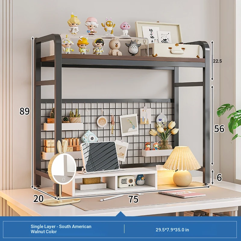 【Includes Pegboard】75*20*98Cm Double Layer - South American Walnut + Black Frame★