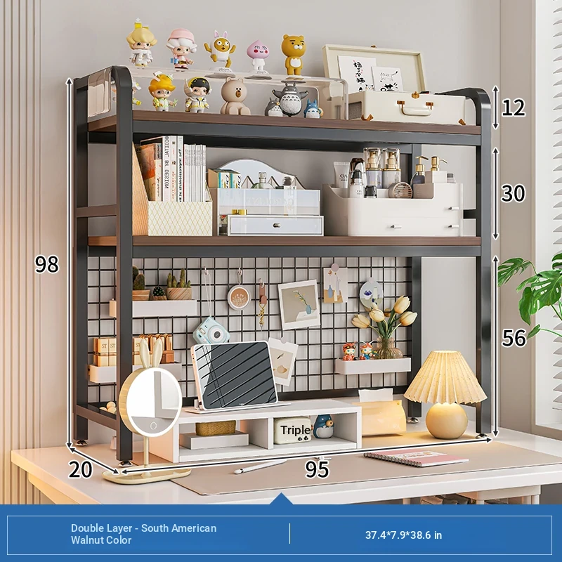 【Includes Pegboard】95*20*98Cm Double Layer - South American Walnut Wood + Black Frame ★