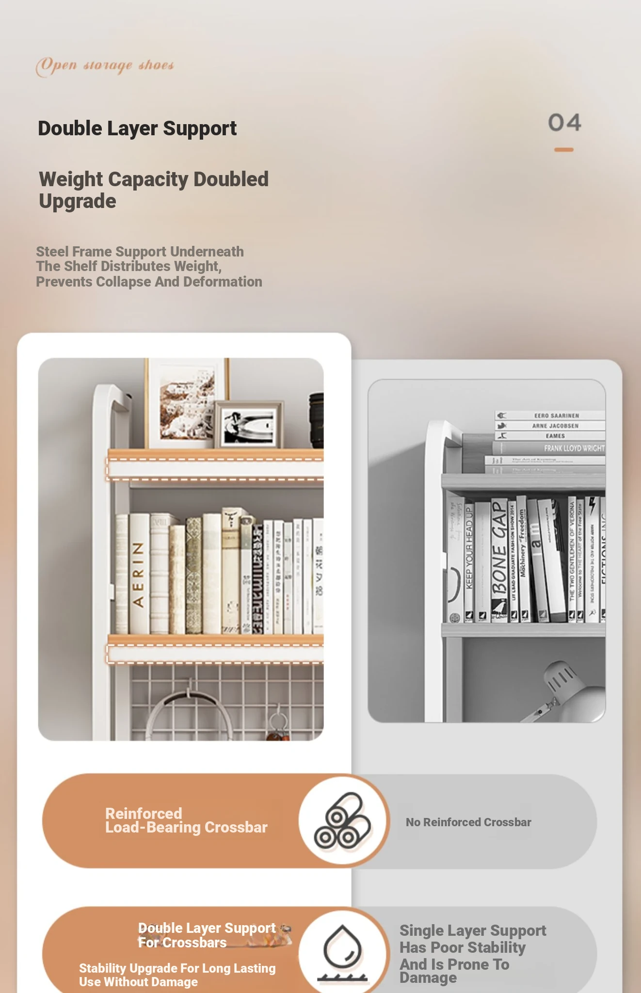 【Includes Pegboard】135*20*98Cm Double Layer - Silver Oak with White Frame ★