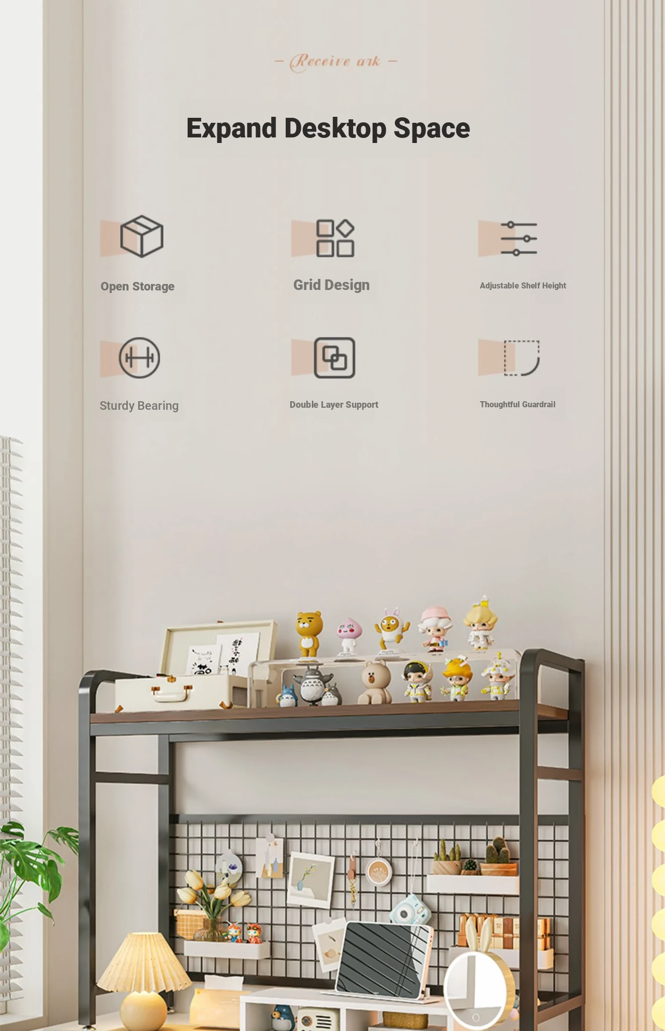 Stylish Multi-Tiered Desktop Storage Rack - Ideal for Students, Perfect for Organizing Your Books and Computer Accessories in Dorms and Home Offices!
