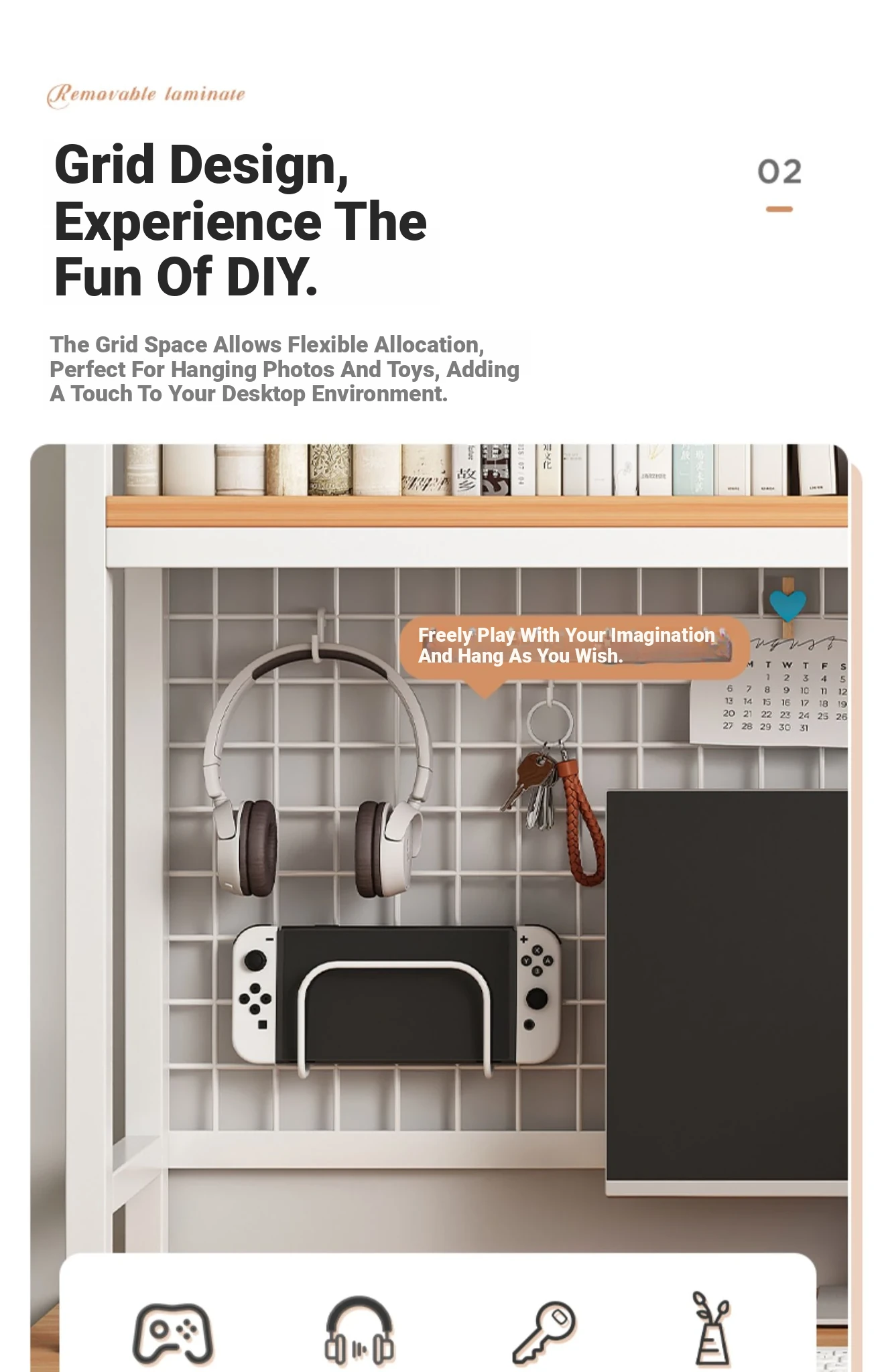 【Includes Pegboard】55*20*89Cm Single-Tier - Silver Oak with White Frame★