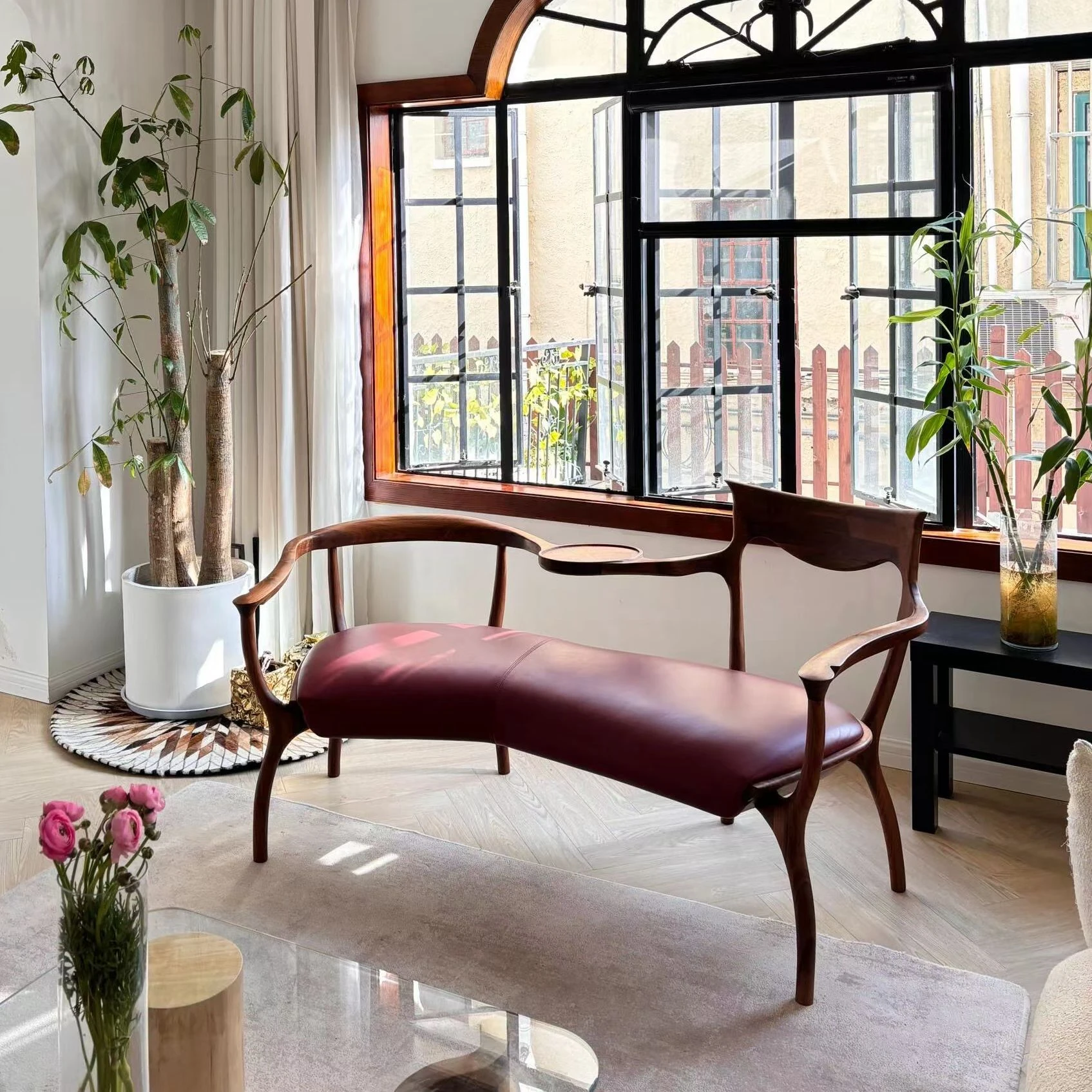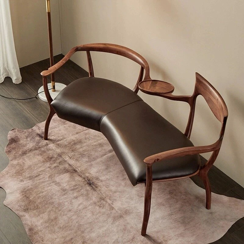 Stylish New Chinese-Style North American Black Walnut Leisure Sofa Chair - Luxurious Solid Wood and Genuine Leather Loveseat for Home Living Room