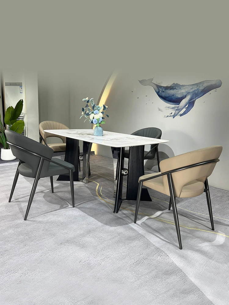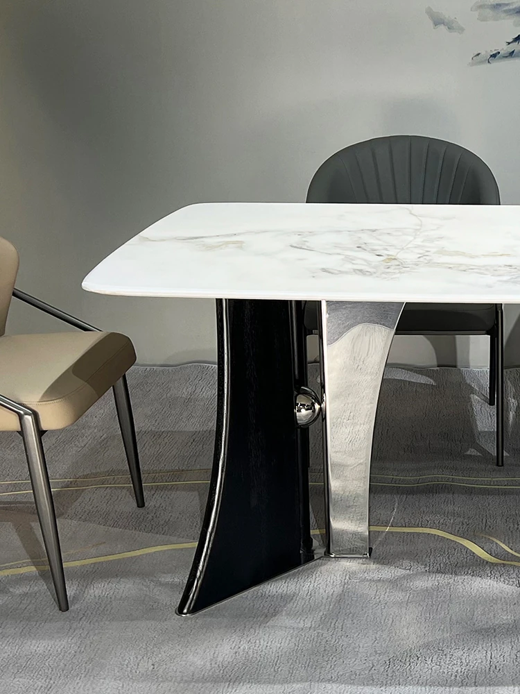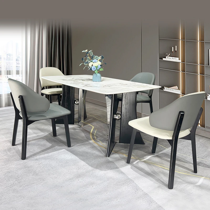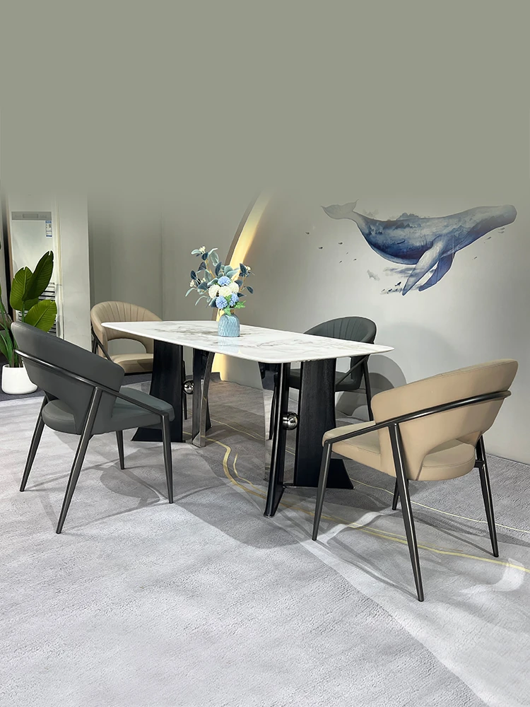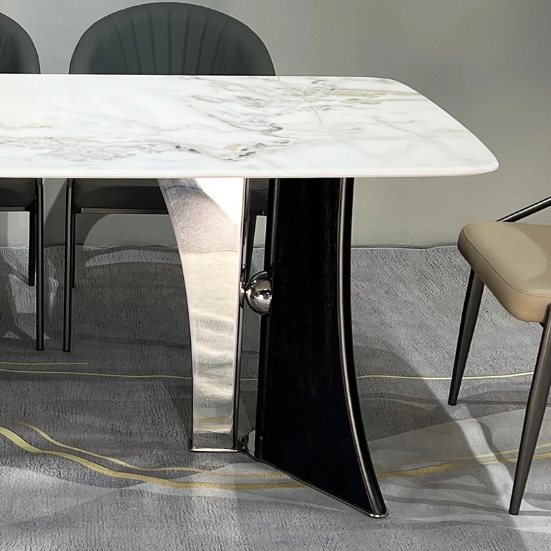 Stylish Rectangular Microcrystalline Stone Dining Table for Cafés and Restaurants - Modern Marble Design Perfect for Any Space