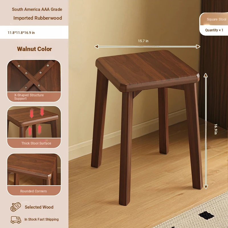 [Strict Selection of Solid Wood] Square Stool-Walnut Color -1 Pack [Ingenuity Craft⭐Solid and durable]]