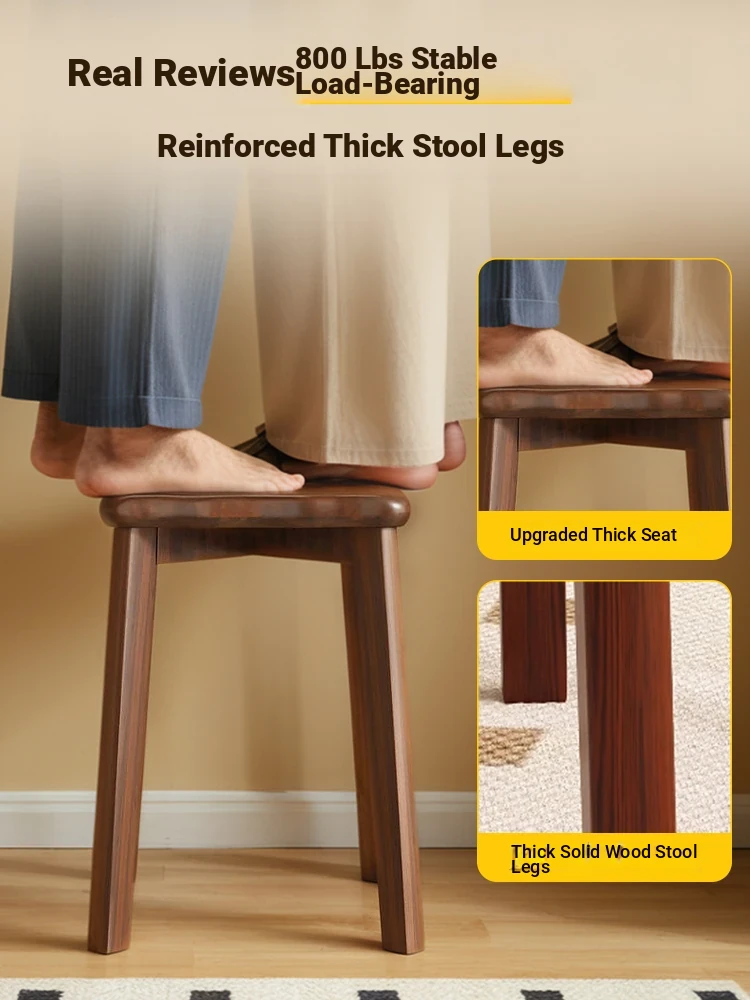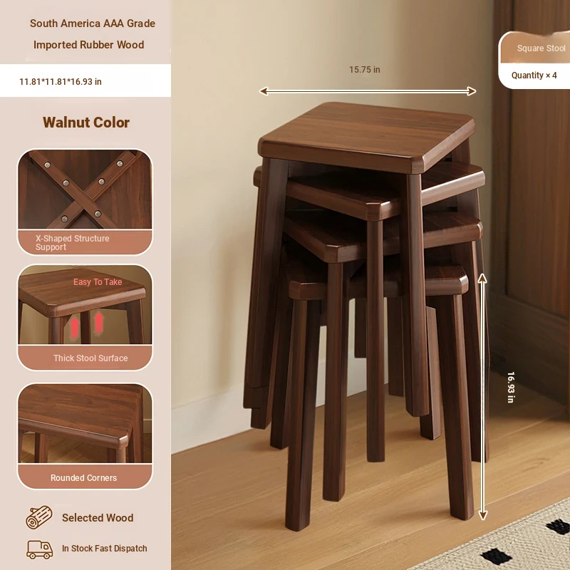 [Strict Selection of Solid Wood] Square Stool-Walnut Color -4 Pack [Ingenuity Craft⭐Solid and durable]]