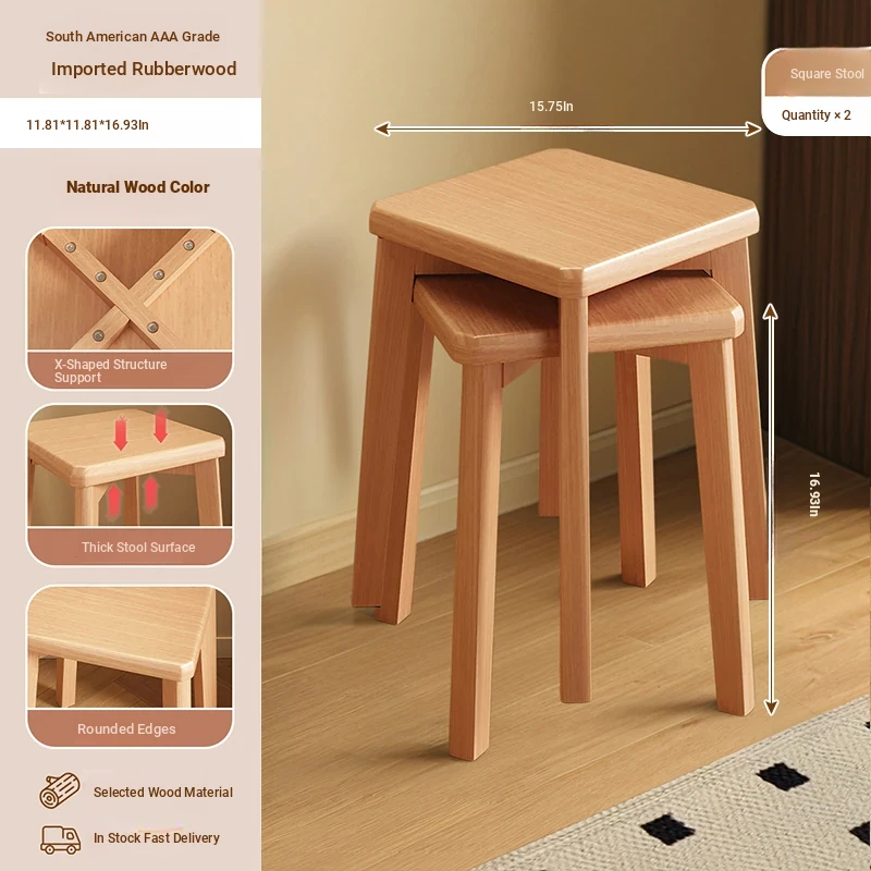 [Strict Selection of Solid Wood] Square Stool-Log Color -2 Pack [Craftsmanship⭐Solid and durable]]