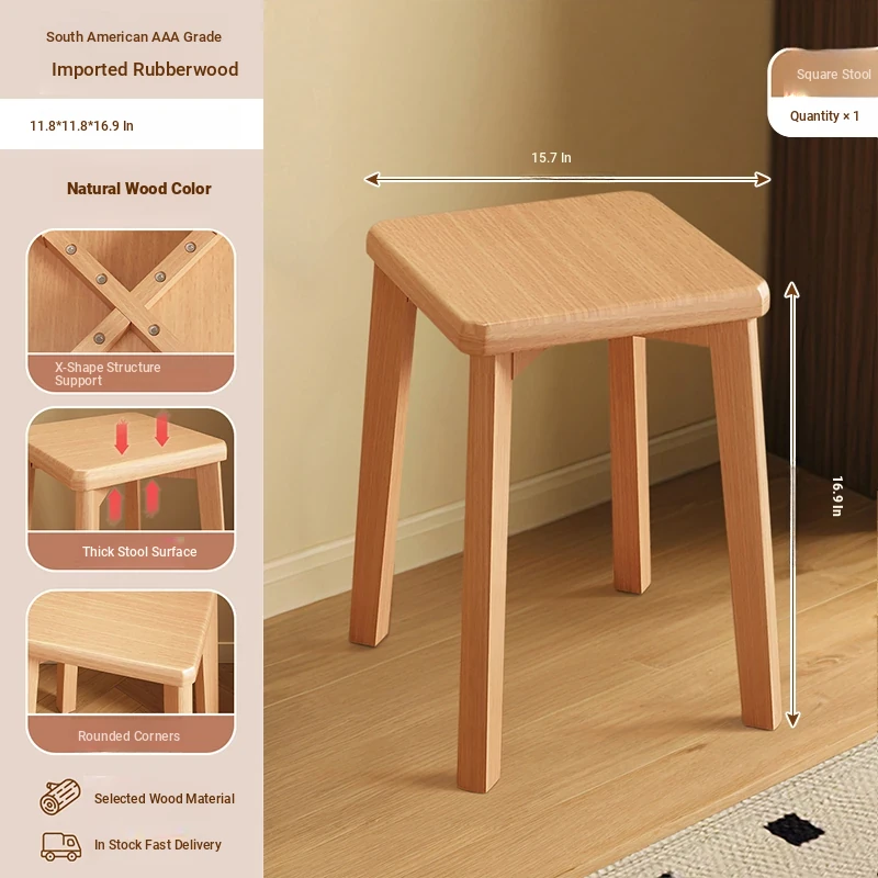 [Strict Selection of Solid Wood] Square Stool-Log Color -1 Pack [Craftsmanship⭐Solid and durable]]