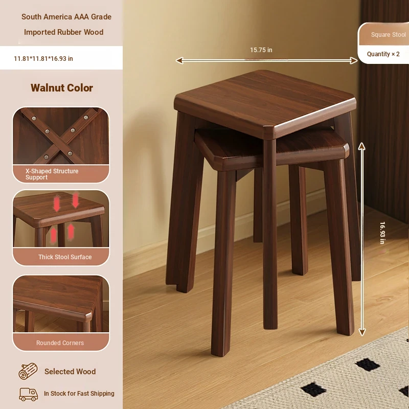 [Strict Selection of Solid Wood] Square Stool-Walnut Color -2 Pack [Ingenuity Craft⭐Solid and durable]]