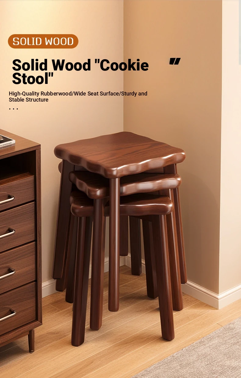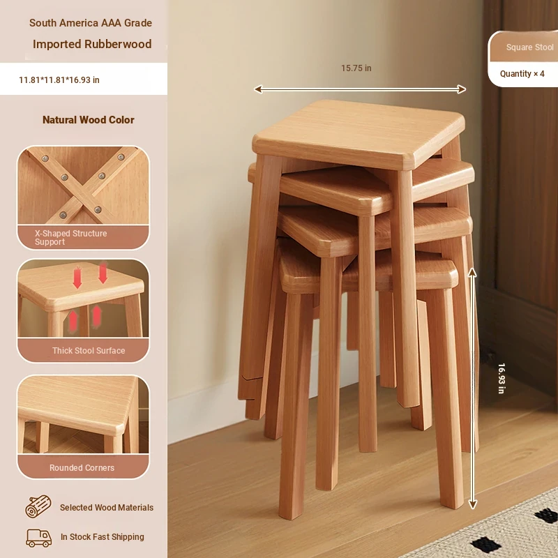 [Strict Selection of Solid Wood] Square Stool-Log Color -4 Pack [Ingenuity Craft⭐Solid and durable]]