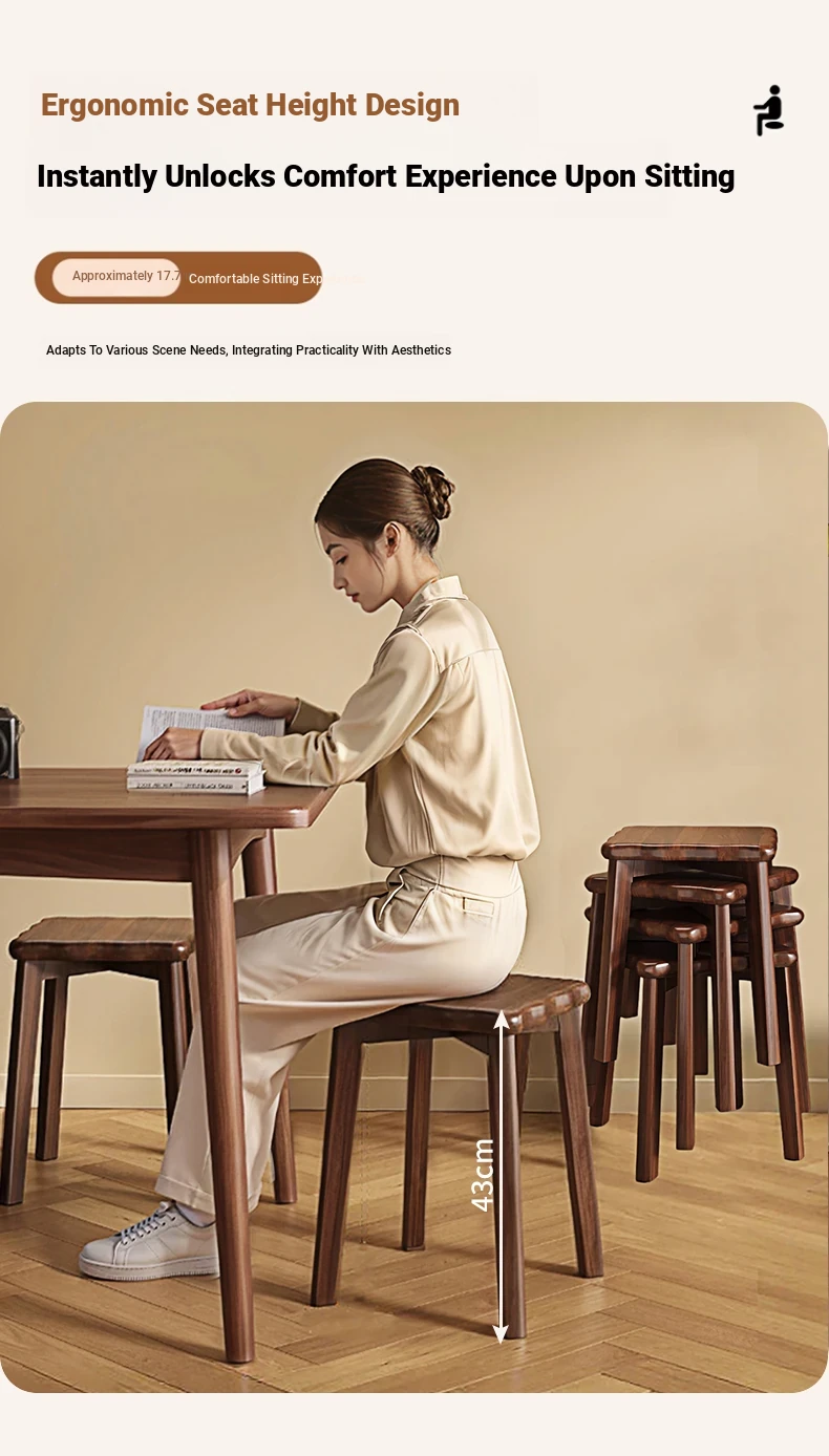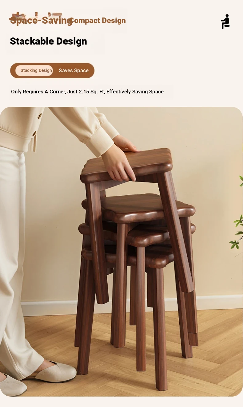 Stylish Solid Wood Dining Chair - Stackable, Space-Saving Design for Home Use, Perfect for Guests or as a Makeup Vanity Stool! Ideal for Dining Rooms and Bedrooms.