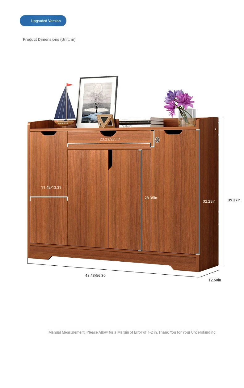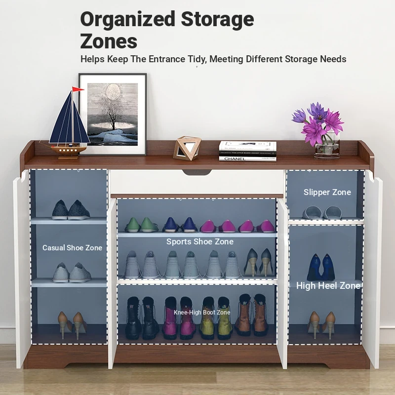 Stylish Solid Wood Shoe Cabinet - Large Capacity Entryway Storage Rack for Home & Balcony - 2024 Trendy Design